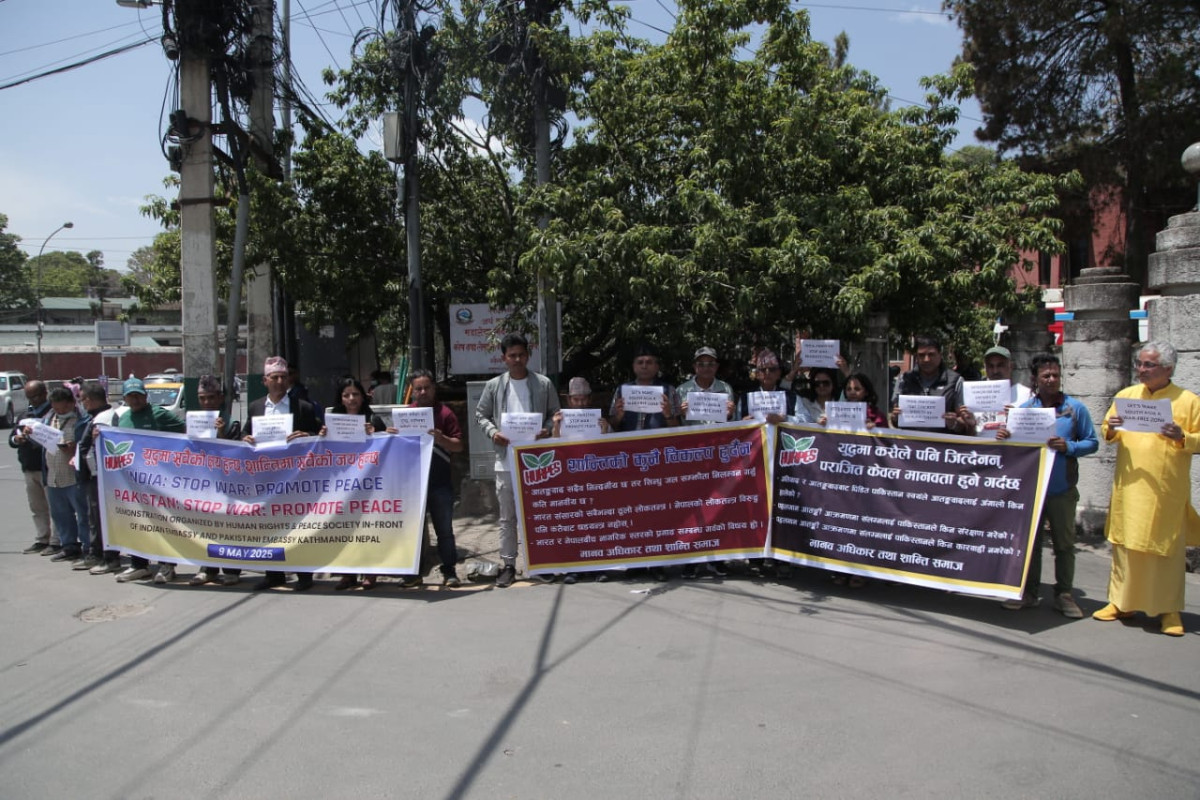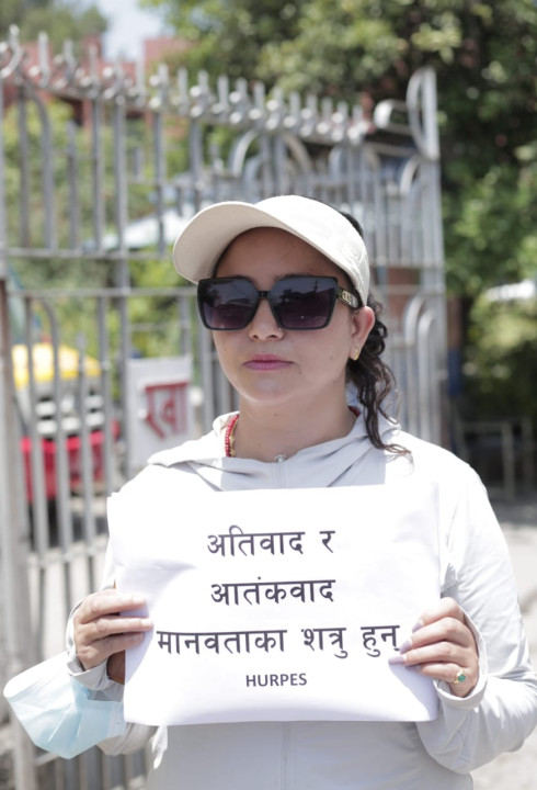 काठमाडौँ । मानव अधिकार तथा शान्ति समाजले आतंकवादबिरुद्ध प्रदर्शन गरेको छ ।