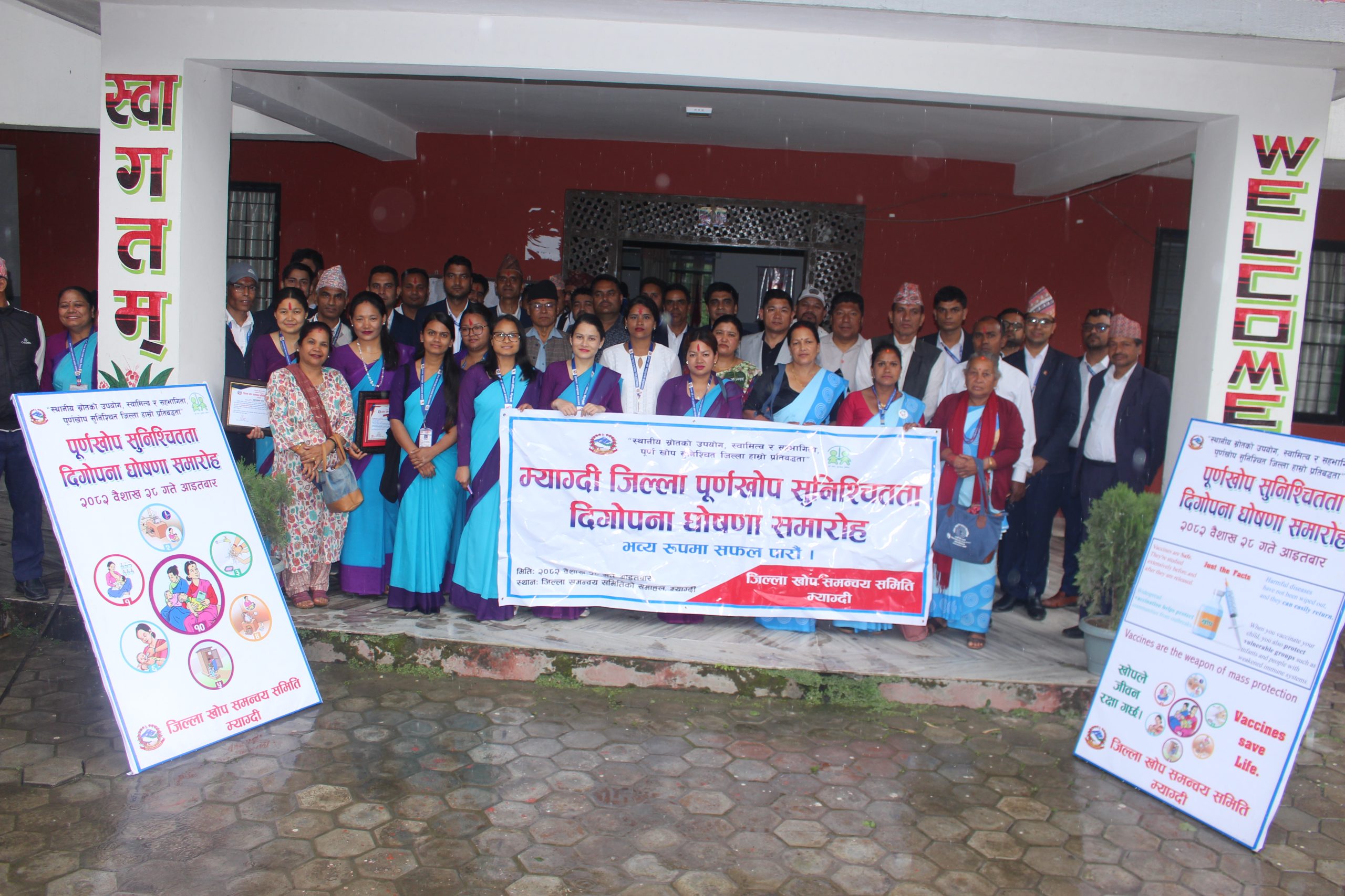 म्याग्दी । म्याग्दी पूर्णखोप सुनिश्चितता एवं दिगोपना जिल्ला घोषणा भएको छ । आज सदरमुकाम बेनीमा आयोजित एक समारोहबीच जिल्लालाई चालु आर्थिक वर्षमा गण्डकी प्रदेशमै पहिलो पूर्णखोप सुनिश्चितता एवं दिगोपना जिल्ला घोषणा गरिएको हो ।