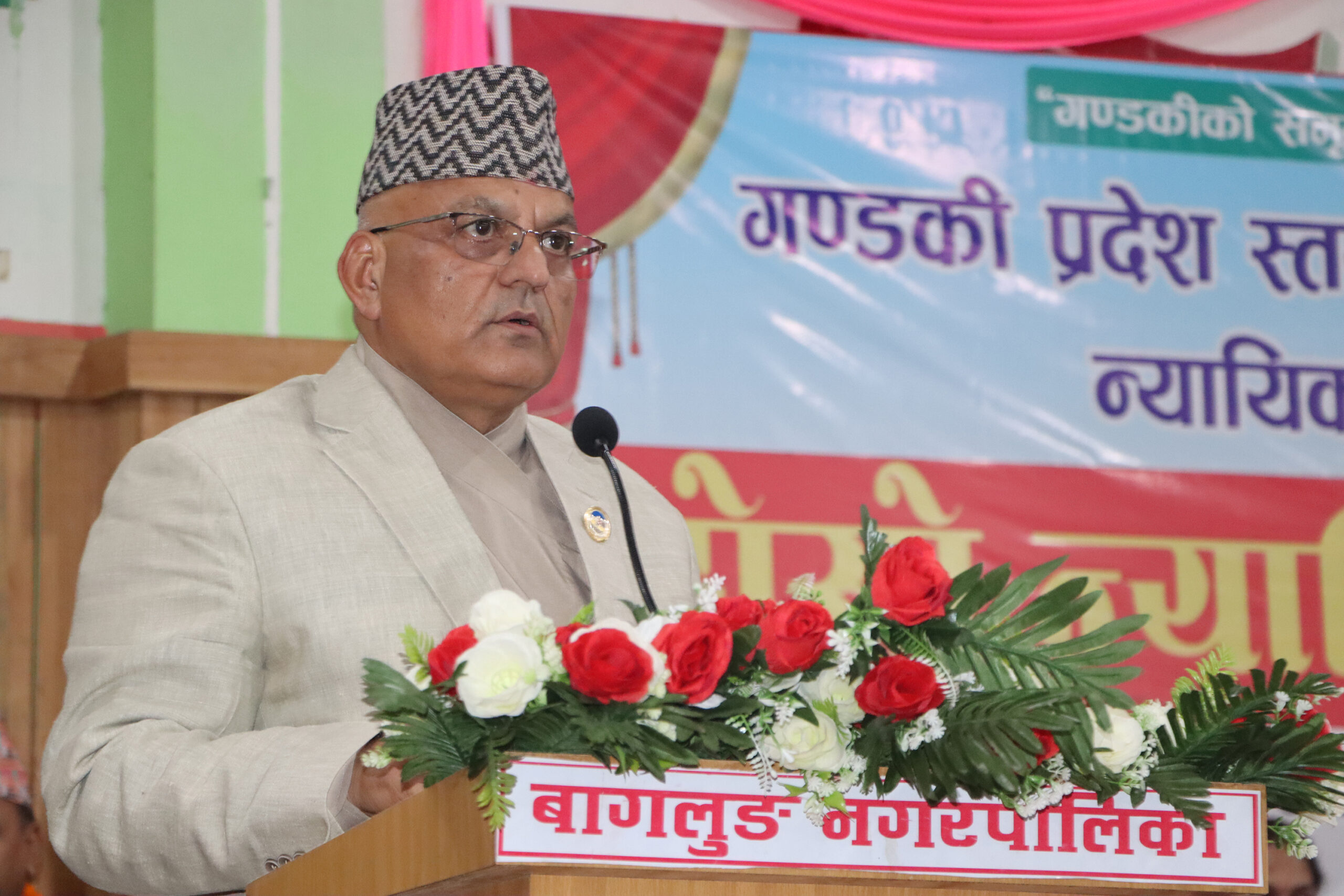 आज बागलुङमा आयोजित गण्डकी प्रदेशस्तरीय न्यायिक सम्मेलनमा उहाँले नागरिकलाई आयआर्जनसँग जोड्न स्थानीयस्तरमै रोजगार सिर्जना गर्नुपर्ने आवश्यकता रहेको औँल्याउनुभयो ।