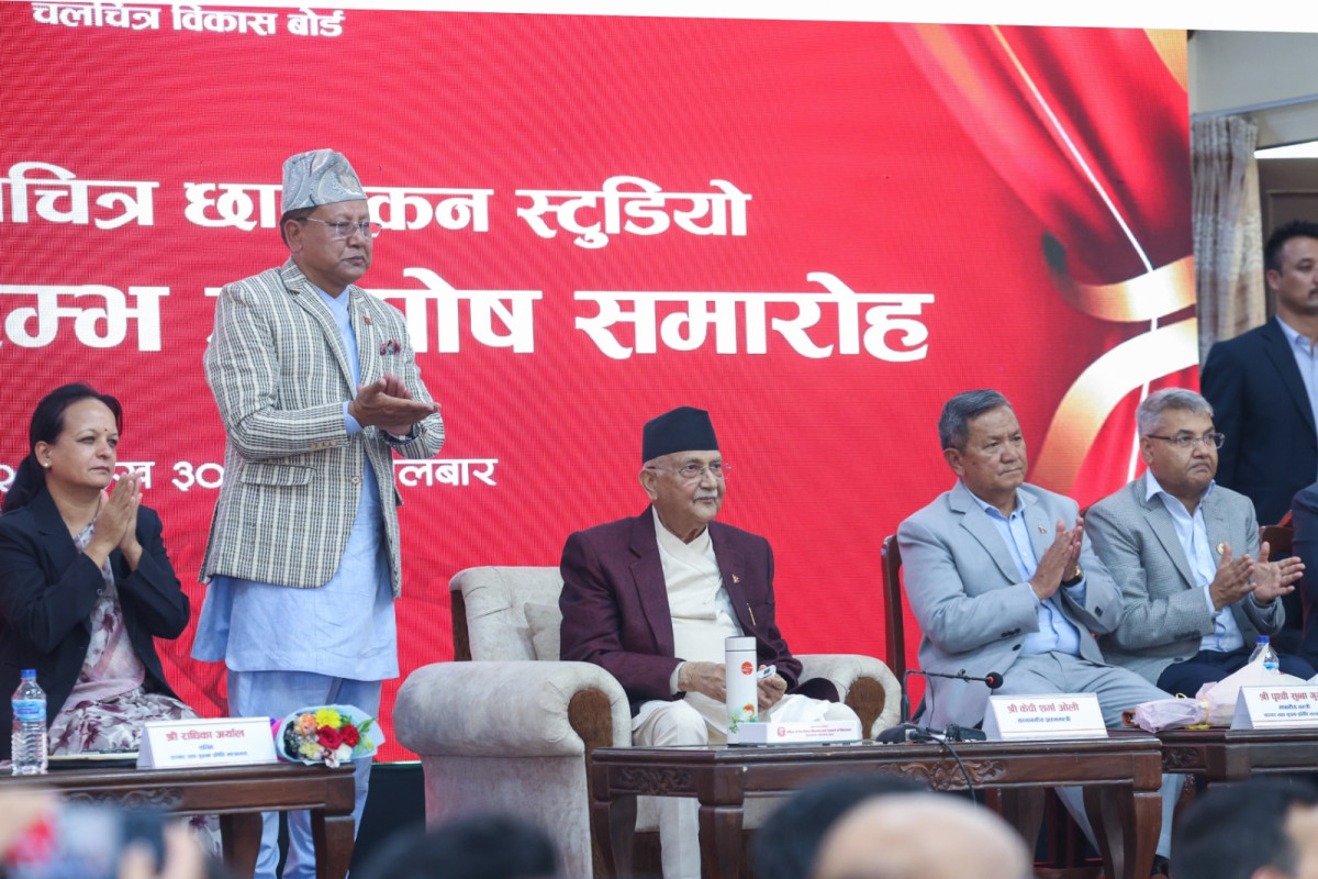 प्रधानमन्त्री निवास, बालुवाटारमा आज चलचित्र विकास बोर्डद्वारा आयोजित कार्यक्रममा प्रधानमन्त्री ओलीले स्टुडियो निर्माणको शुभारम्भ गर्नुभएको हो ।