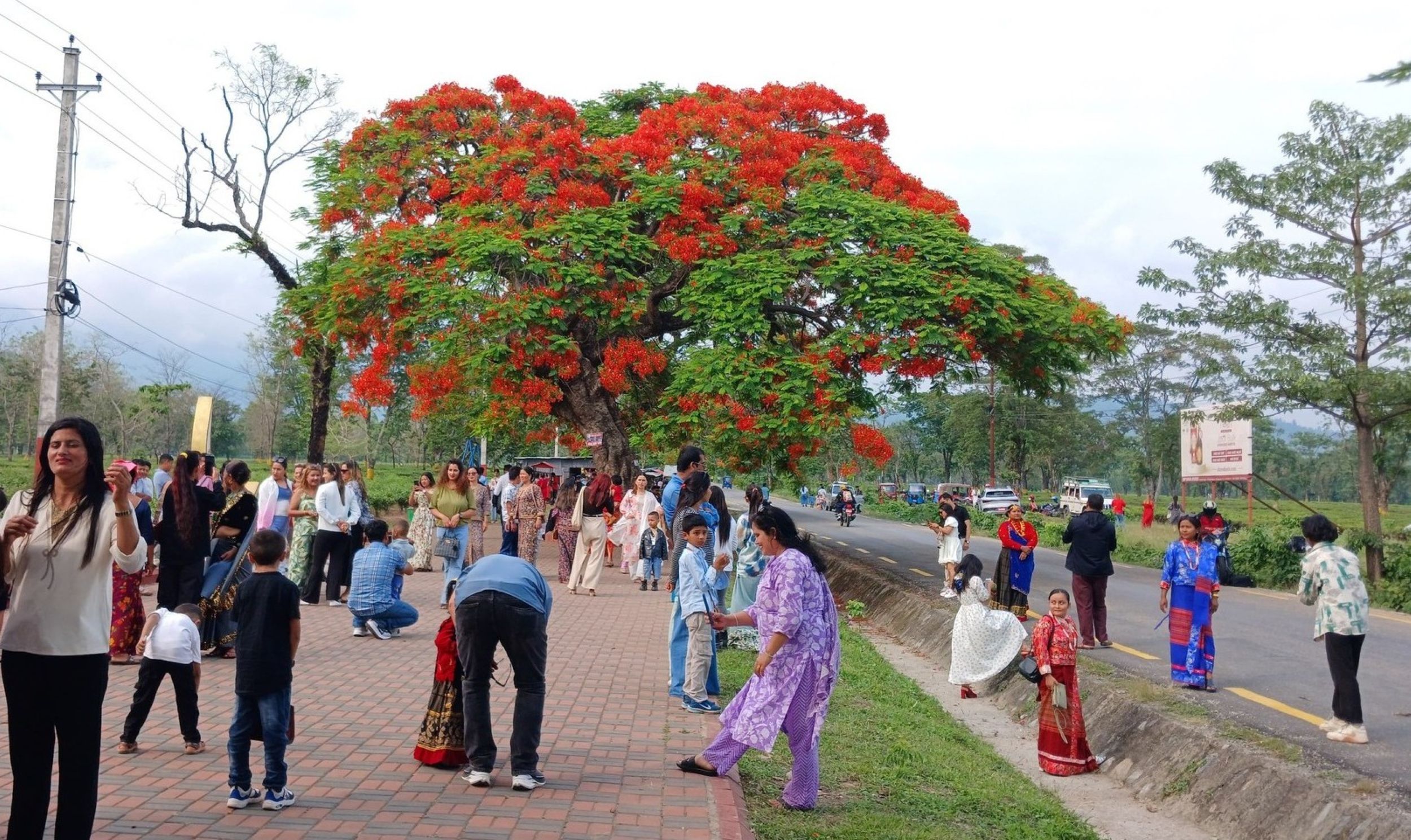 ढकमक्क फुलेका गुलमोहरले पर्यटकलाई लोभ्यायो