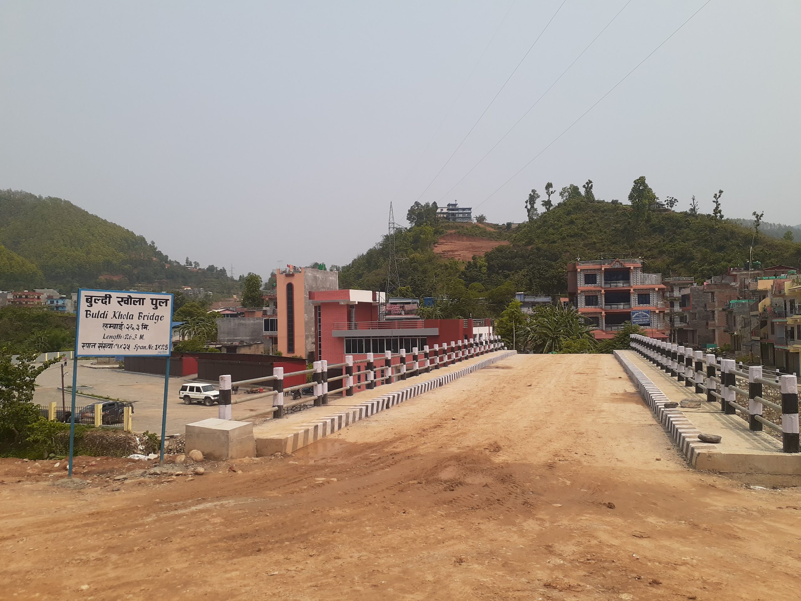 तनहुँ । जिल्लाको व्यास नगरपालिका–१ र २ जोड्नेगरी कराङकाठबाट बसपार्क जावतजावत बुल्दीखोलामा पुल निर्माण गरिएको छ । नगरप्रमुख बैकुण्ठ न्यौपानेले बुल्दीखोलामा एक स्पामको पुल निर्माण गरिएको बताउनुभयो । पुल निर्माणपछि बसपार्कमा गाडी व्यवस्थापनका साथै सवारी र सर्वसाधारणलाई आवतजावतमा सहज भएको छ ।