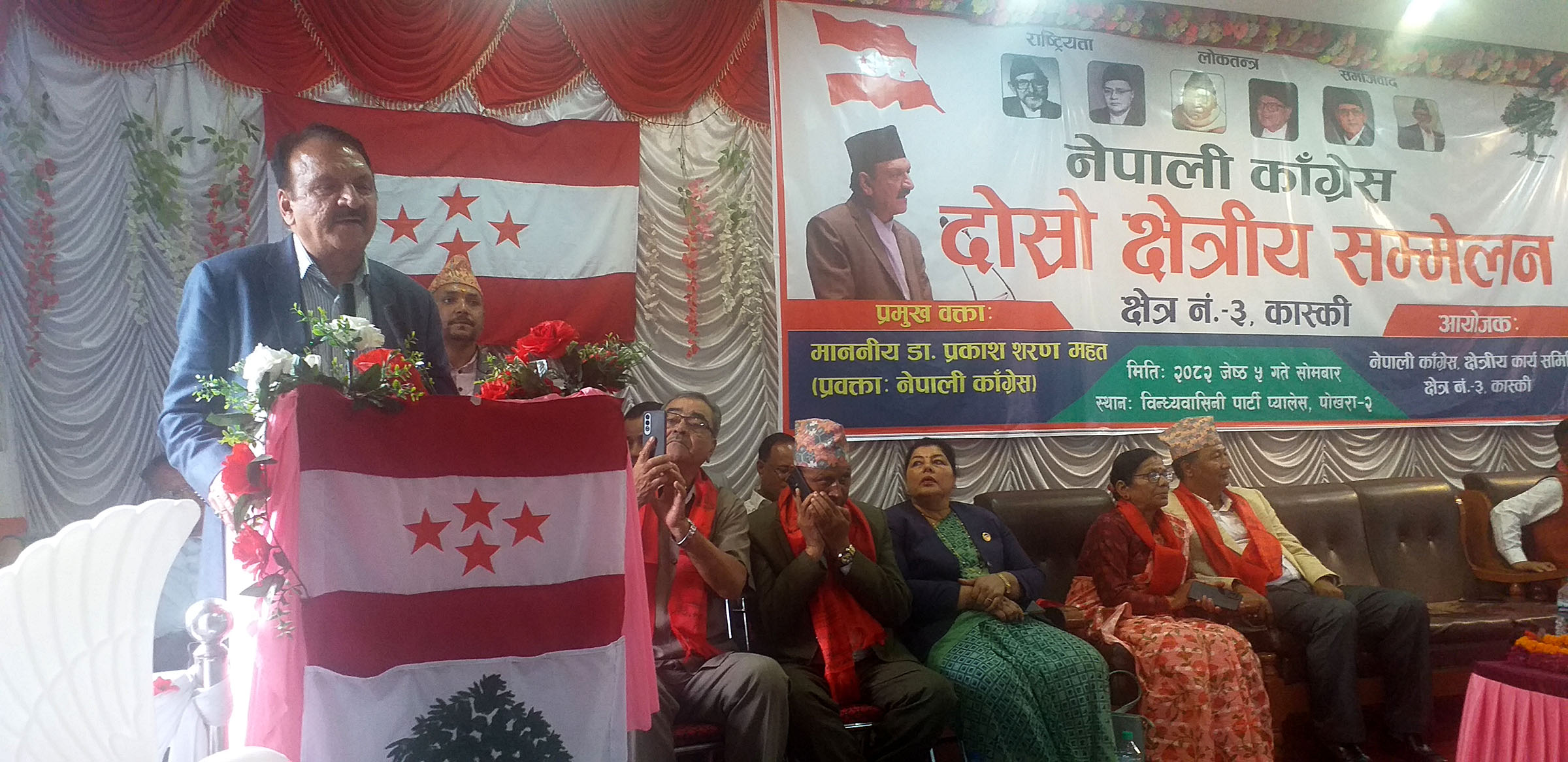 नेपाली कांग्रेस क्षेत्रीय कार्यसमिति क्षेत्र नं ३ कास्कीको दोस्रो क्षेत्रीय सम्मेलनको पोखरामा आज उद्घाटन गर्दै उहाँले विसं २०४८ यता स्वास्थ्य, शिक्षा, सञ्चार, सडक, पुल र विद्युत् जस्ता विकास निर्माणले तीव्रता पाए पनि त्यस्ता कार्यको प्रचारप्रसार गर्न नसक्दा कांग्रेस पछि परेको बताउनुभएको हो ।