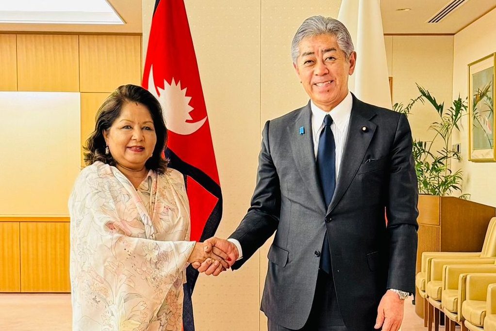 काठमाडौँ । परराष्ट्रमन्त्री डा आरजु राणा देउवा र जापानका विदेशमन्त्री इवाया ताकेसीबीच आज टोकियोमा द्विपक्षीय भेटवार्ता भएको छ । जापान भ्रमणमा रहनुभएकी मन्त्री डा राणा र जापानी विदेशमन्त्री ताकेसीबीच आज टोकियोस्थित विदेश मन्त्रालयमा भेटवार्ता भएको हो ।