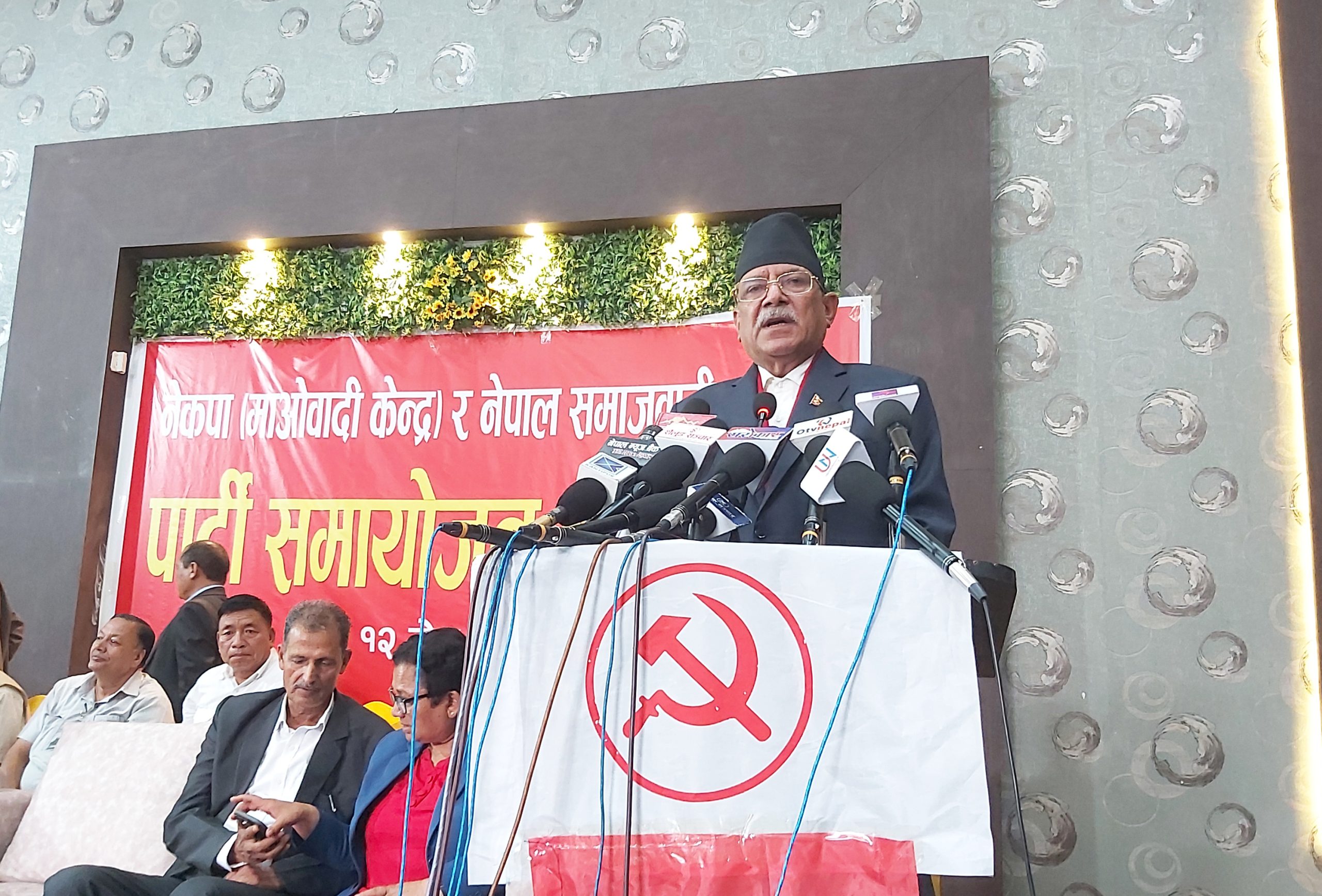नेकपा (माओवादी केन्द्र) र समाजवादी पार्टीबीच पार्टी समायोजनका लागि आज ललितपुरमा आयोजित कार्यक्रममा उहाँले गत आमचुनावदेखि नै एकताको पक्षमा छलफल चलाएको र विचार, राजनीतिक आस्थाका आधारमा एकीकरण, समायोजन र ध्रुवीकरणको प्रक्रिया निरन्तर जारी रहेको उल्लेख गर्नुभयो ।