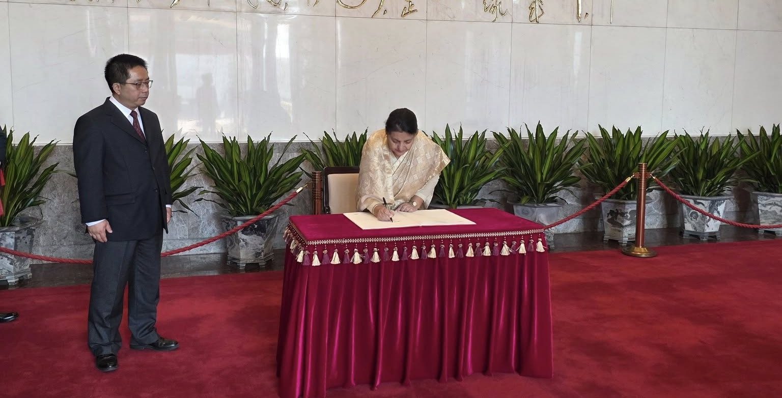 चीनको औपचारिक भ्रमणमा रहनु भएका पूर्वराष्ट्रपति भण्डारीले तियानमेन स्क्वायर पुगेर माओ त्सेतुङको समाधिस्थलमा पुष्पाहार अर्पण गरी श्रद्धाञ्जली व्यक्त गर्नुभएको छ ।