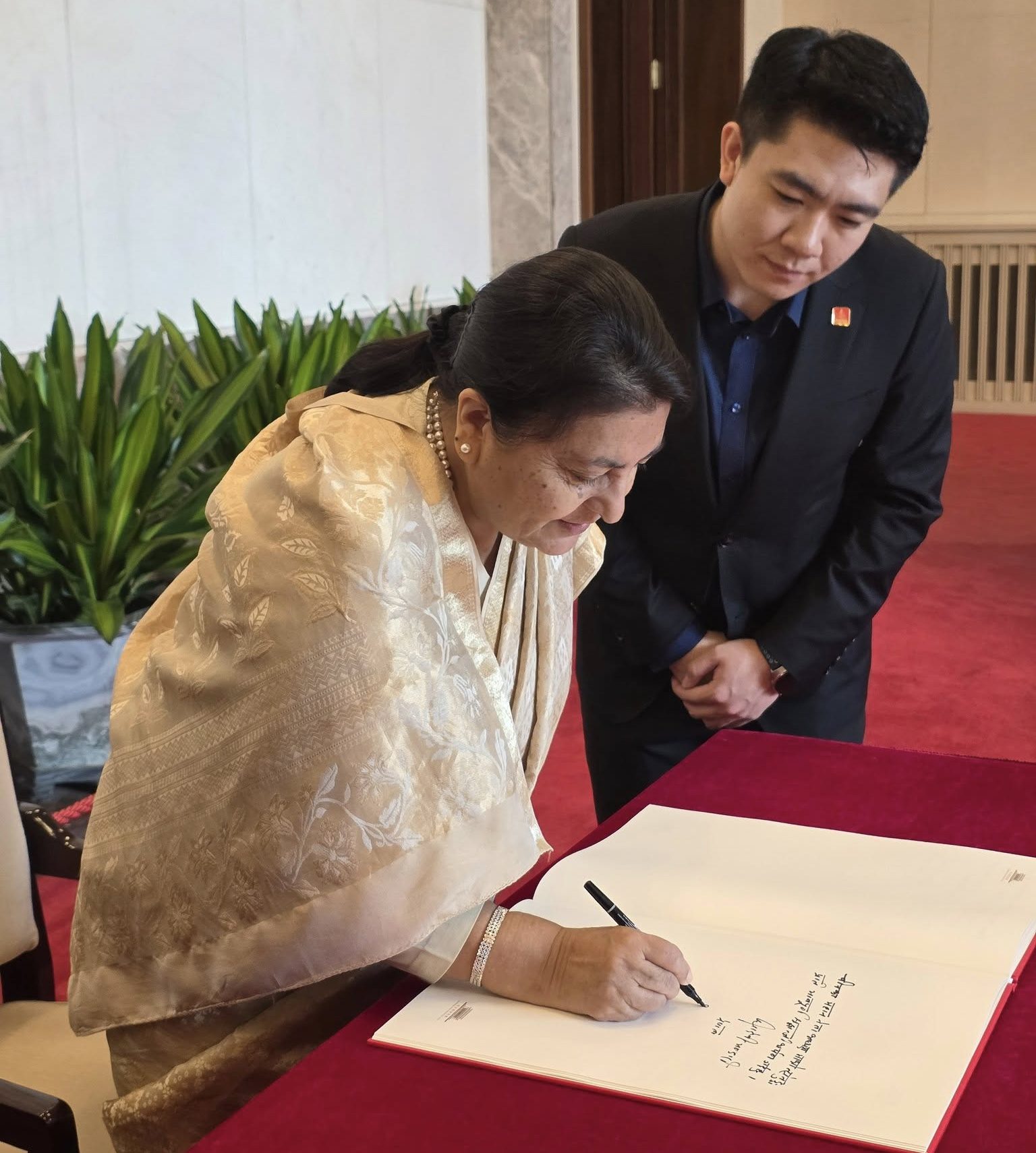 पूर्वराष्ट्रपति भण्डारी त्यहाँ पुग्दा चिनियाँ कम्युनिस्ट पार्टी अन्तर्राष्ट्रिय विभाग प्रमुख ल्यु च्यानशाओ उहाँलाई स्वागत गर्नुभएको थियो । समारोहमा चिनियाँ उच्च अधिकारीहरू सहित नेपाली प्रतिनिधी मण्डलको उपस्थिती रहेको थियो ।