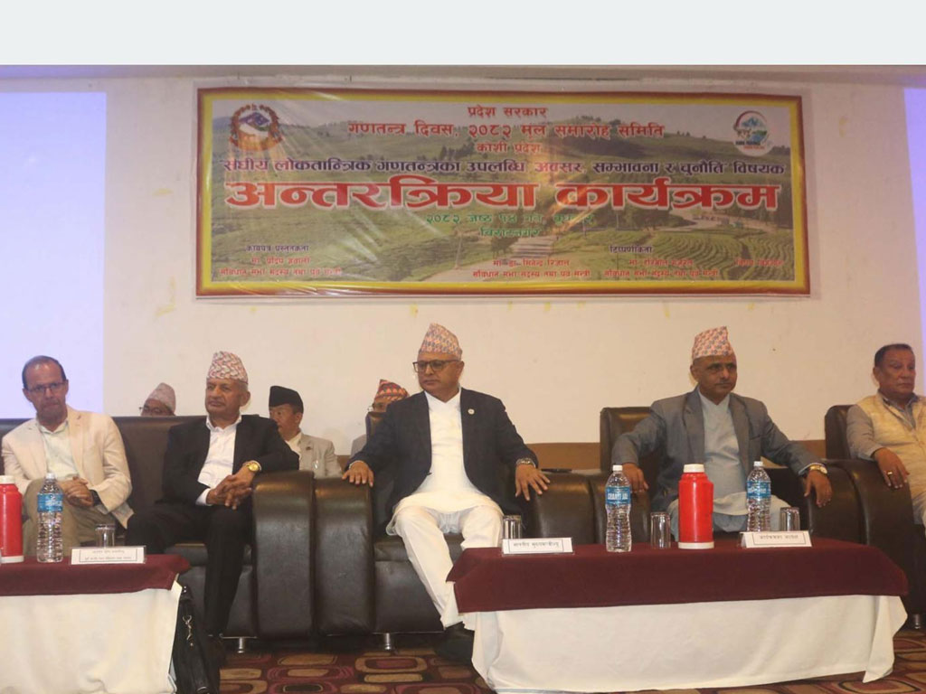 कोशी प्रदेश सरकार गणतन्त्र दिवस मूल समारोह समितिद्वारा आज आयोजित ‘सङ्घीय लोकतान्त्रिक गणतन्त्रका उपलब्धि, अवसर, सम्भावना र चुनौती’ विषयक अन्तरक्रियामा उहाँले वर्तमान सरकारका साझेदार दलले गर्दा मुलुकमा राजनीतिक स्थिरता कायम भएको बताउनुभयो ।