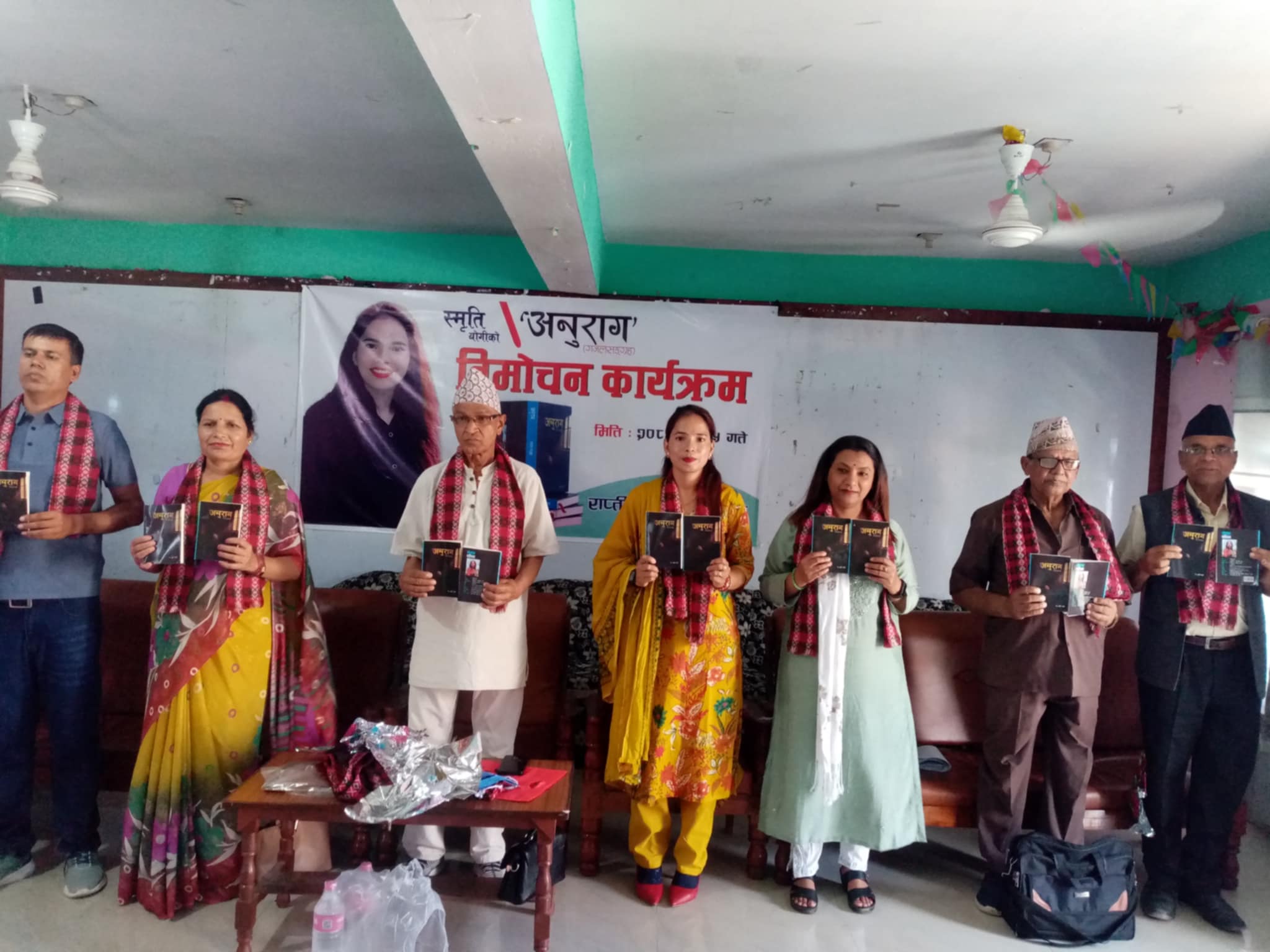 दाङ। साहित्यकार स्मृति योगीको ‘अनुराग’ गजलसङ्ग्रहको आज घोराहीमा एक कार्यक्रमबीच विमोचन गरिएको छ ।
