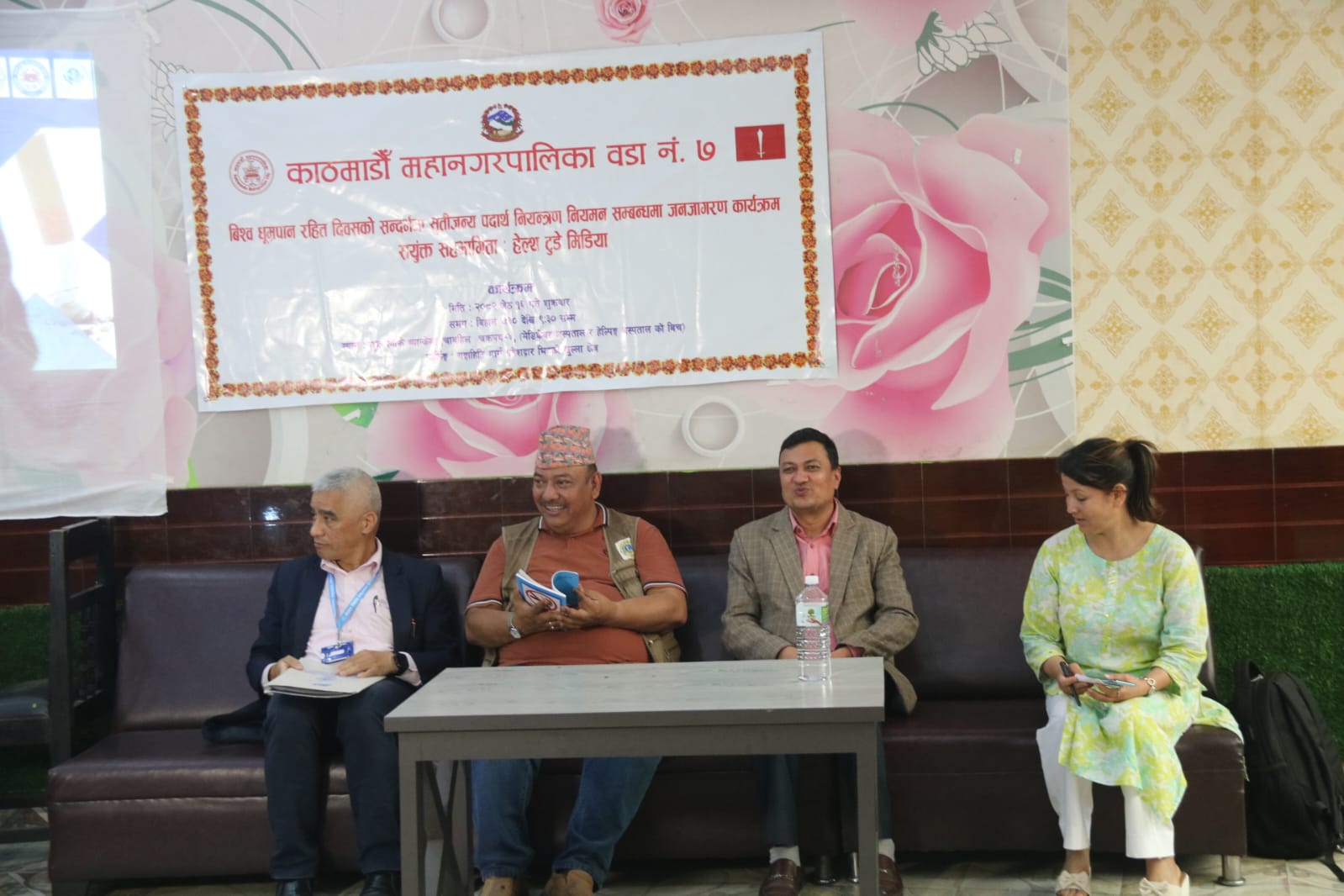 आज यहाँस्थित काठमाडौँ महानगरपालिका–७, स्वास्थ्य मन्त्रालय र हेल्थ टुडे मिडियाको संयुक्त आयोजनामा ‘सुर्तीजन्य पदार्थ नियन्त्रण र नियमनसम्बन्धी सरोकारवालाहरुबीच अन्तरक्रिया’ गरेको थियो ।