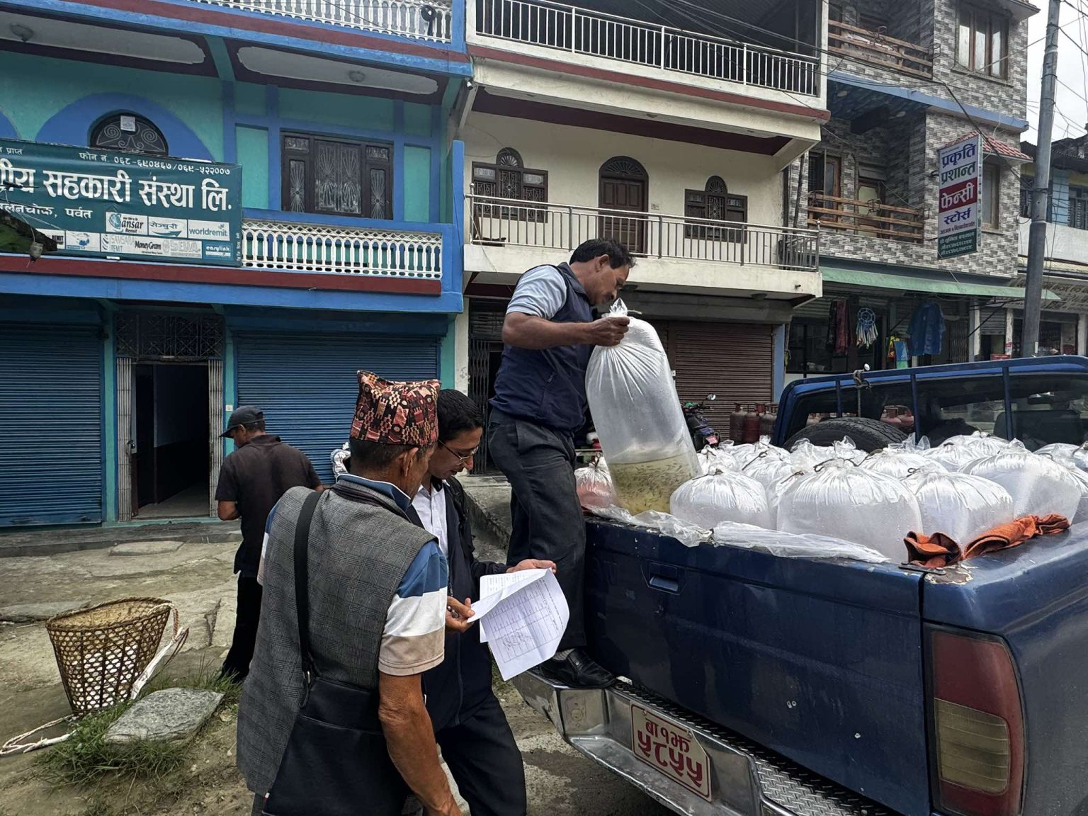 पशु स्वास्थ्य प्राविधिक प्रकाश परियारले कुश्मा नगरपालिकामा ३८ हजार, जलजला गाउँपालिकामा ६० हजार, मोदी गाउँपालिकामा ३५ हजार, विहादी गाउँपालिकामा सात हजार, पैँयु गाउँपालिकामा ३१ हजार र फलेबास नगरपालिकामा ५० हजार माछाका भुरा वितरण गरिएको जानकारी दिनुभयो ।