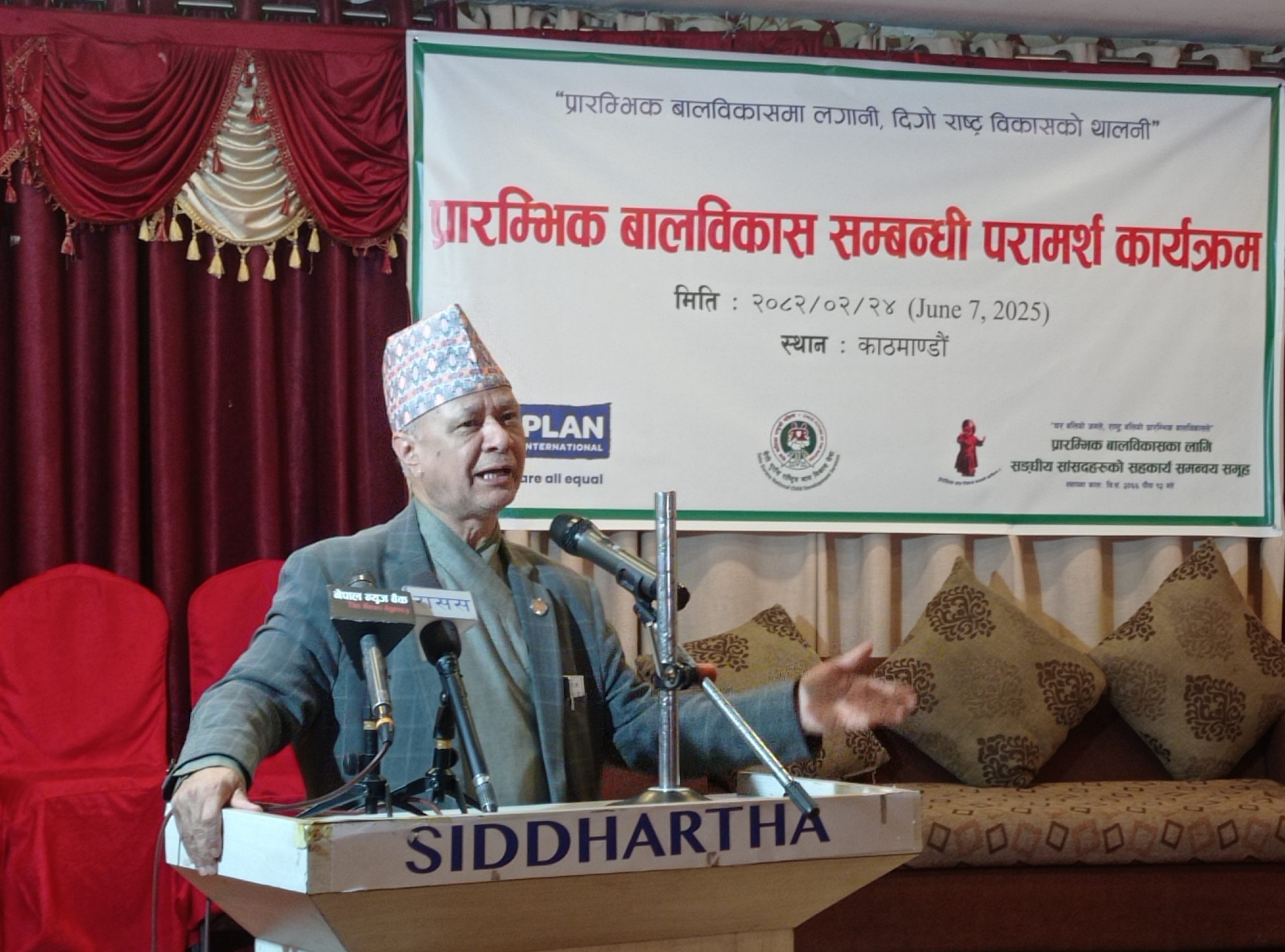प्रारम्भिक बालविकासका लागि सङ्घीय सांसदहरुको सहकार्य र समन्वय समूहले यहाँ आज आयोजना गरेको ‘प्रारम्भिक बालविकाससम्बन्धी परामर्श कार्यक्रम’मा उहाँले विधेयक पारित गर्न तीव्रताका साथ काम गरिरहेको उल्लेख गर्नुभयो ।