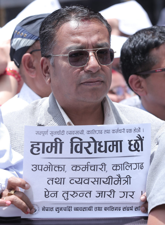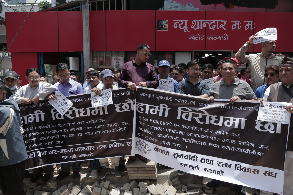 सुनचाँदीमा सरकारले लगाएको करका विरुद्ध ध्यानाकर्षण गराउने भन्दै नेपाल सुनचाँदी व्यवसायी तथा कालिगढ संघर्ष समितिको अगुवाई व्यवसायीहरु आन्दोलित भएका हुन् । आईतवार उनीहरुले न्युरोड गेटदेखि इन्द्रचोक डबलीसम्म ¥यालीसहित आन्दोलन गरेका हुन् ।