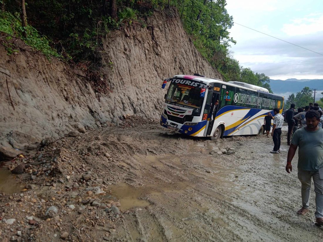 आज बिहान आएको बाढीमा डाइभर्सन बग्दा राजमार्ग अवरुद्ध भएको जिल्ला प्रहरी कार्यालयका प्रहरी नायब उपरीक्षक मधु नेपालले राससलाई बताउनुभयो । बाढी नरोकिएकाले आवागमनका निम्ति तत्काल केही गर्न सकिने अवस्था नभएको उहाँले बताउनुभयो ।