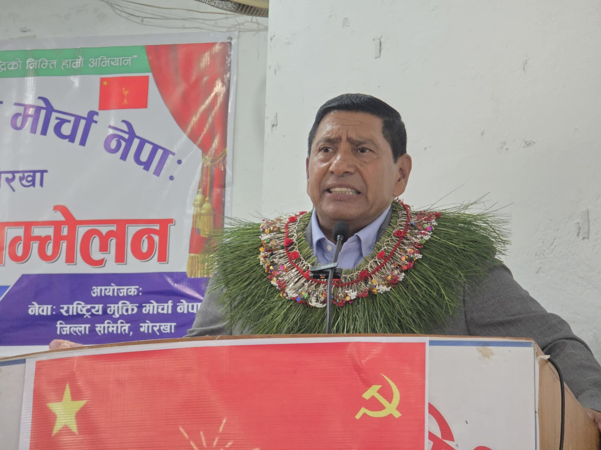 नेवाः राष्ट्रिय मुक्ति मोर्चा नेपाः गोरखा जिल्ला समितिको तेस्रो जिल्ला सम्मेलन कार्यक्रमलाई आज सदरमुकाममा सम्बोधन गर्नुहुँदै उहाँले लोकतन्त्रको रक्षा गर्न सामाजिक, आर्थिक रुपान्तरण आवश्यक रहेको बताउनुभयो ।