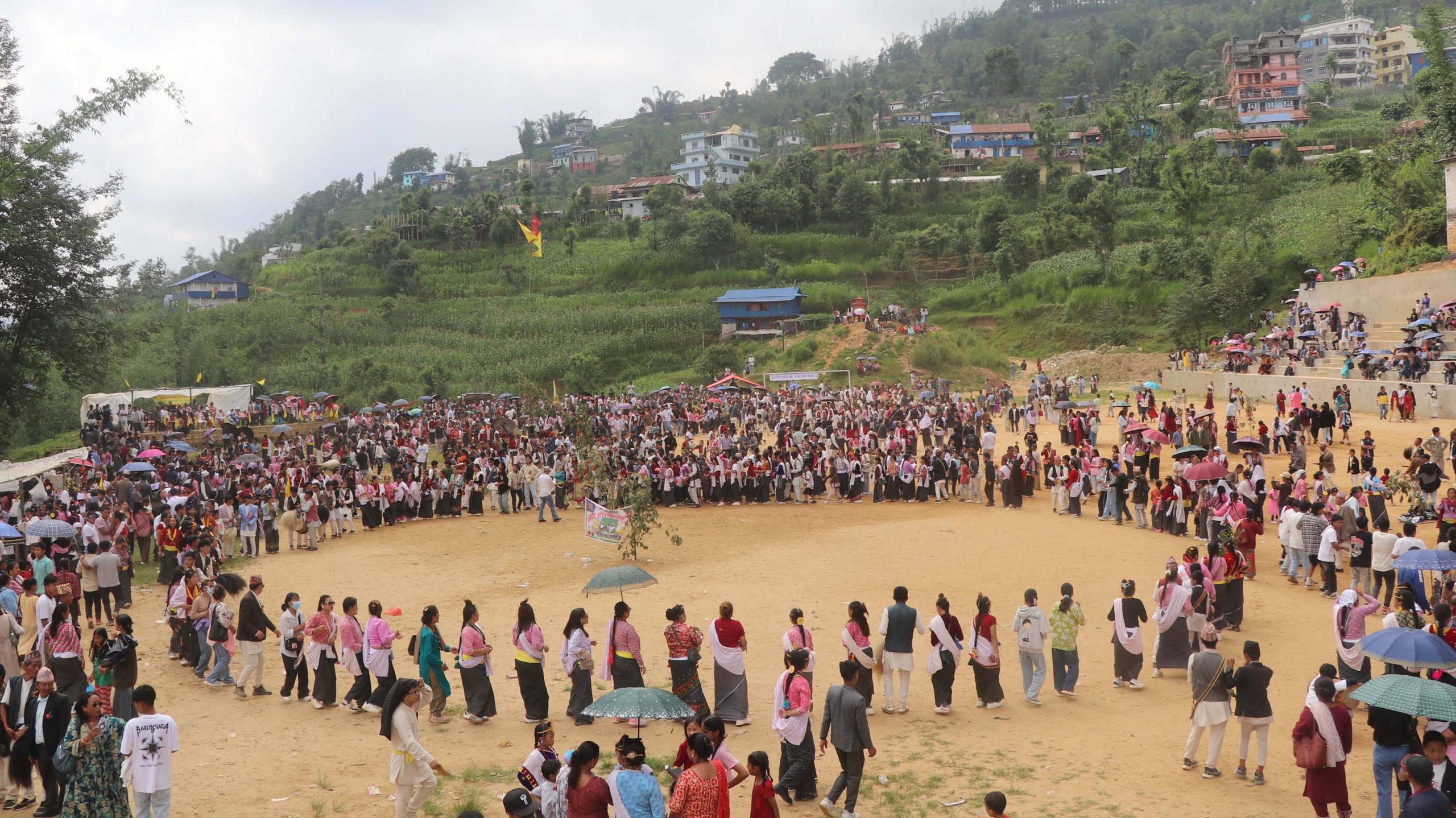 खोटाङ । शनिबार दिनभरको टन्टलापुर घाम । ढोल, झ्याम्टाको तालसँगै साकेला गीतले गुञ्जयमान वातावरण । जिल्लाको प्रमुख व्यापारिक केन्द्र दिक्तेल बजारको माटीकोरे खेलमैदानमा भरिभराउ मानिसको भीड । सधैँ फुटबल खेल प्रतियोगिताका दर्शकले भरिभराउ हुने माटीकोरे खेलमैदान साकेला गीत र ढोल–झ्याम्टाको तालसँगै साकेला सिली प्रदर्शनले गुञ्जयमान बनेको हो ।