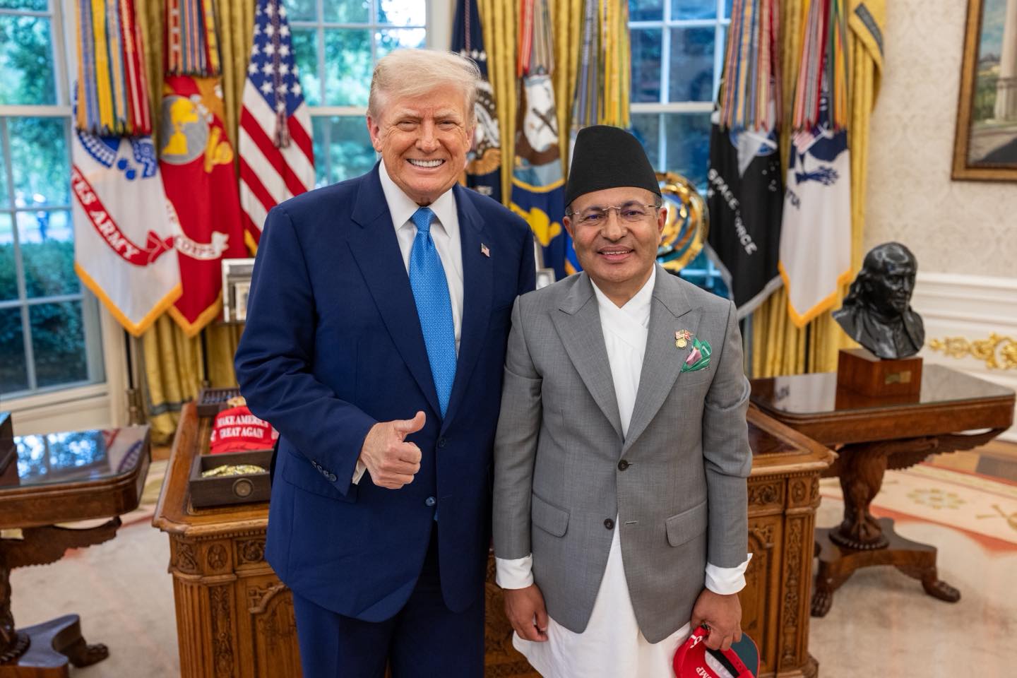 राजदूत रेग्मीद्वा राष्ट्रपति ट्रम्पसमक्ष ओहादाको प्रमाण पत्र पेश