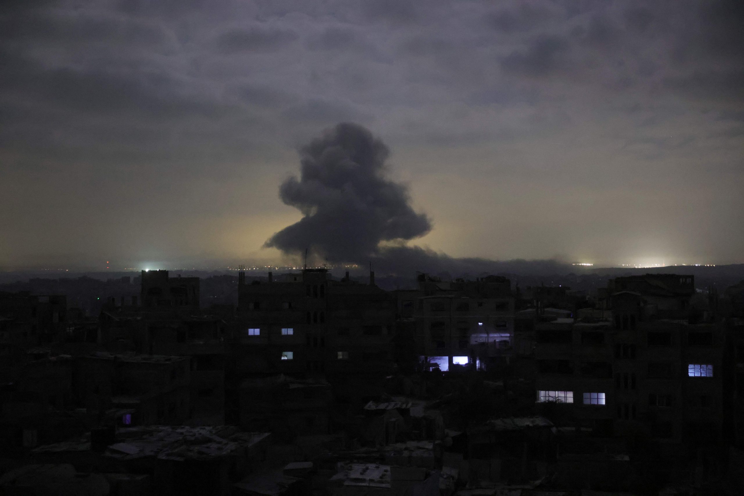 Smoke billows amid reported building detonations by Israeli forces to the east and north of Jabalia city in the northern Gaza Strip at dawn on June 17, 2025. (Photo by Bashar TALEB / AFP)
