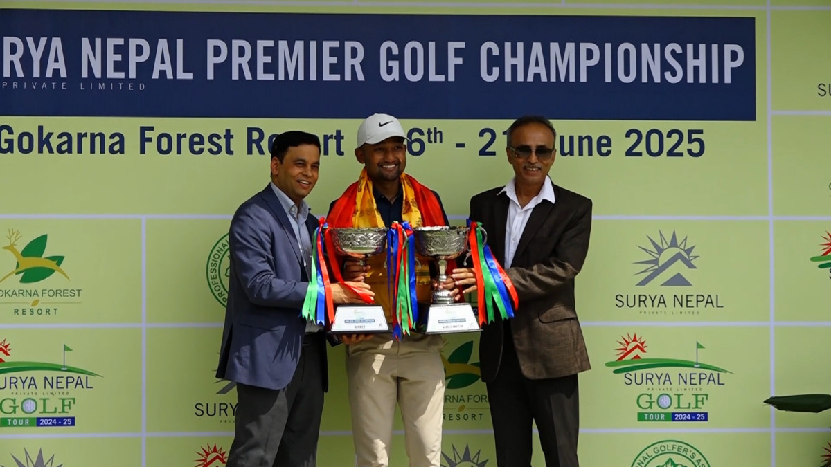 काठमाडौँ । एमेच्योर गल्फर राहुल विश्वकर्माले सूर्य नेपाल गल्फ टुर २०२४–२५ को अन्तिम प्रतियोगिता सूर्य नेपाल प्रिमियर गल्फ च्याम्पियनसिपको उपाधि जितेका छन् ।