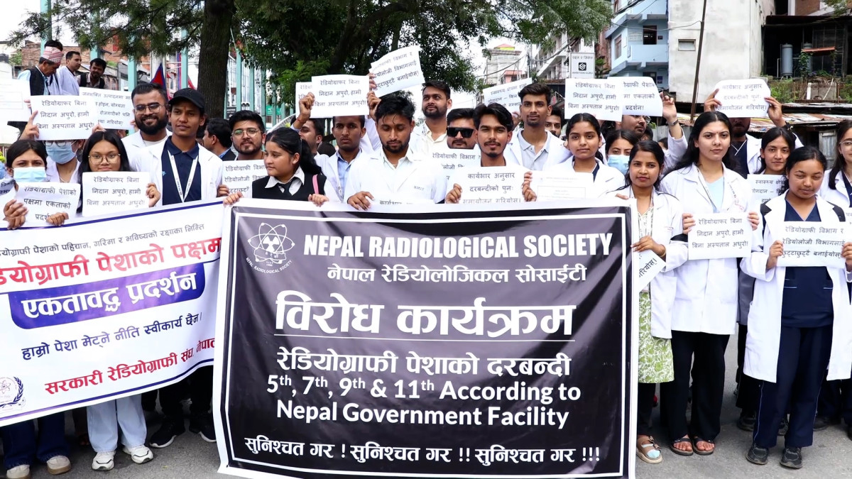 स्वास्थ्यमन्त्रालयको प्रश्तावित ओएनएमको विरोधमा नेपाल रेडियोलोजिकल सोसाइटीको प्रदर्शन