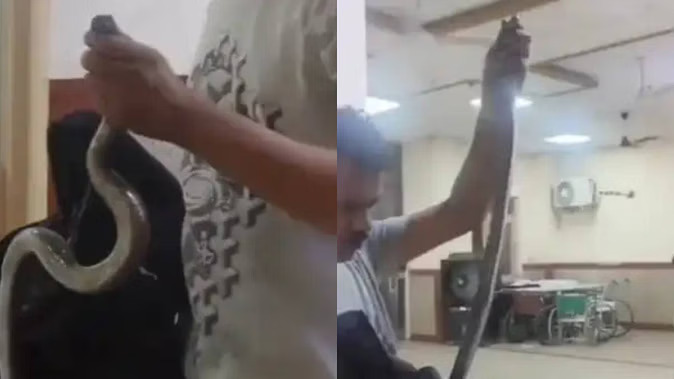 डराउनु वा नर्भस हुनुको सट्टा, ती व्यक्तिले साहस देखाउँदै सर्पलाई जिउँदै समातेर आफ्नो झोलामा बन्द गरे र सिधै अस्पताल गए ।