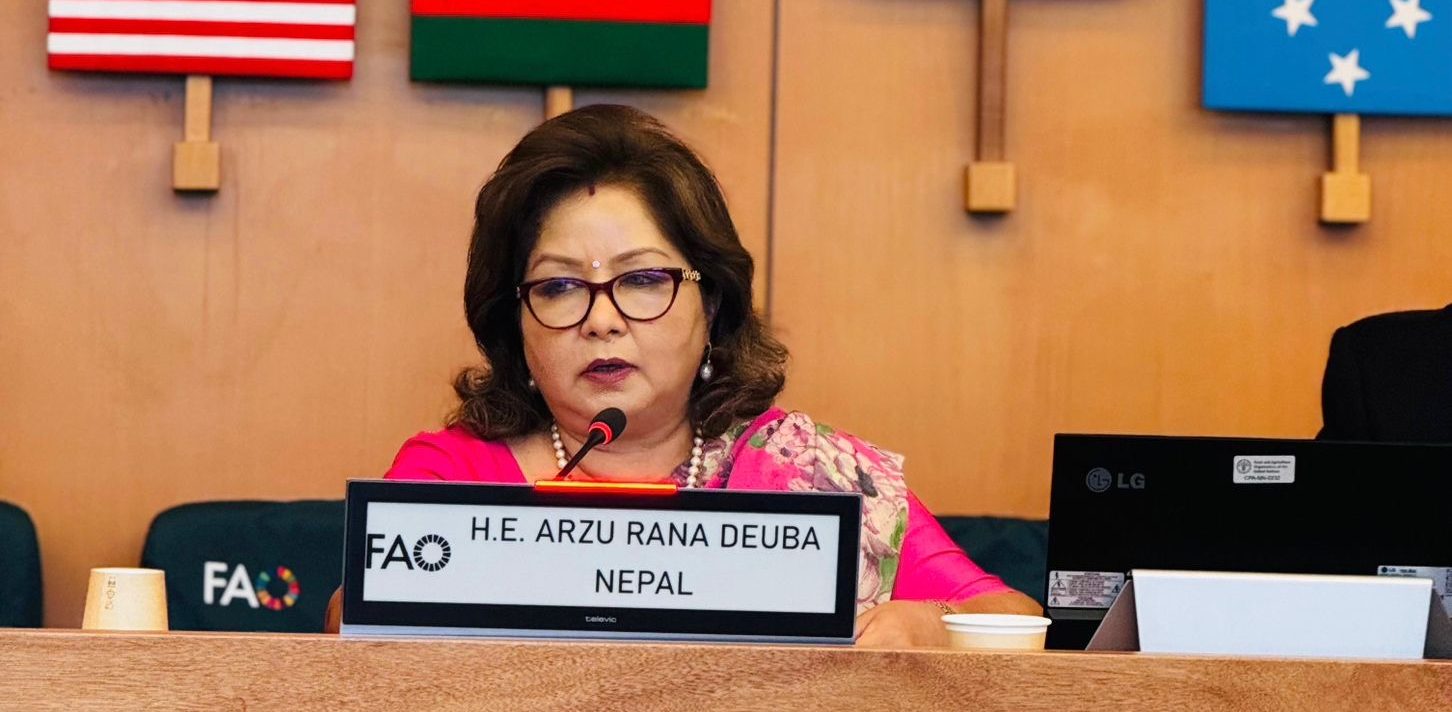 काठमाडौँ । परराष्ट्रमन्त्री डा आरजु राणा देउवाले नेपालले नागरिकको खाद्य सम्बन्धी अधिकारलाई संवैधानिक सुनिश्चितता प्रदान गरेको बताउनुभएको छ । इटालीको रोममा आयोजित राष्ट्रसंघीय खाद्य तथा कृषि संगठनको मन्त्रीस्तरीय विशेष सत्रलाई आज सम्बोधन गर्दै मन्त्री डा राणाले नेपालको संविधानको मौलिक हकमा नै नागरिकको खाद्यसम्बन्धी अधिकारको व्यवस्था गरिएको जानकारी दिनुभयो ।