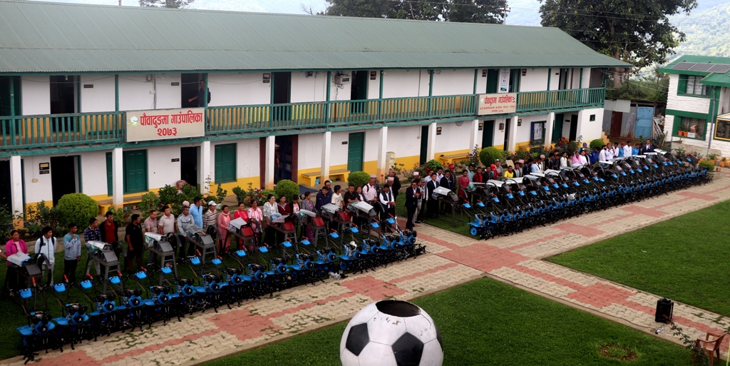 भोजपुर। पौवादुङमा गाउँपालिकाले किसानलाई कृषि औजार वितरण गरेको छ । गाउँपालिकाले किसानसँगको लागत साझेदारीमा रु २८ लाख बराबरका कृषि सामग्री वितरण गरेको हो ।