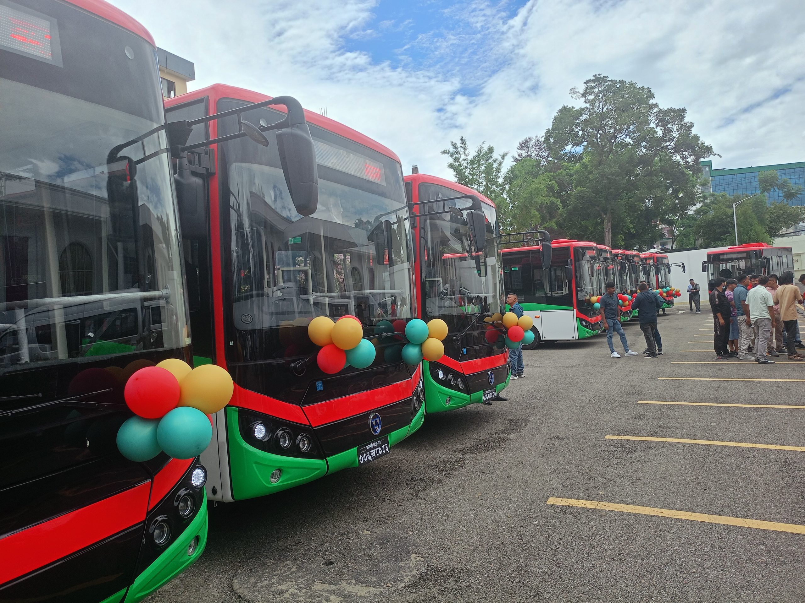 काठमाडौँ । महानगर यातायात प्रालिले आजदेखि विद्युतीय बस सञ्चालनमा ल्याएको छ । ती १२ बस चक्रपथभित्र सञ्चालन हुनेछन् । भौतिक पूर्वाधार तथा यातायातमन्त्री देवेन्द्र दाहालले आज यहाँ आयोजित कार्यक्रममा नयाँ बस सेवाको शुभारम्भ गर्नुहुँदै पेट्रोलियम इन्धनमा निर्भरता कम गर्दै वातावरणमैत्री र ‘स्मार्ट’ सहर निर्माणका लागि विद्युतीय सार्वजनिक यातायात आवश्यक भएको बताउनुभयो ।
