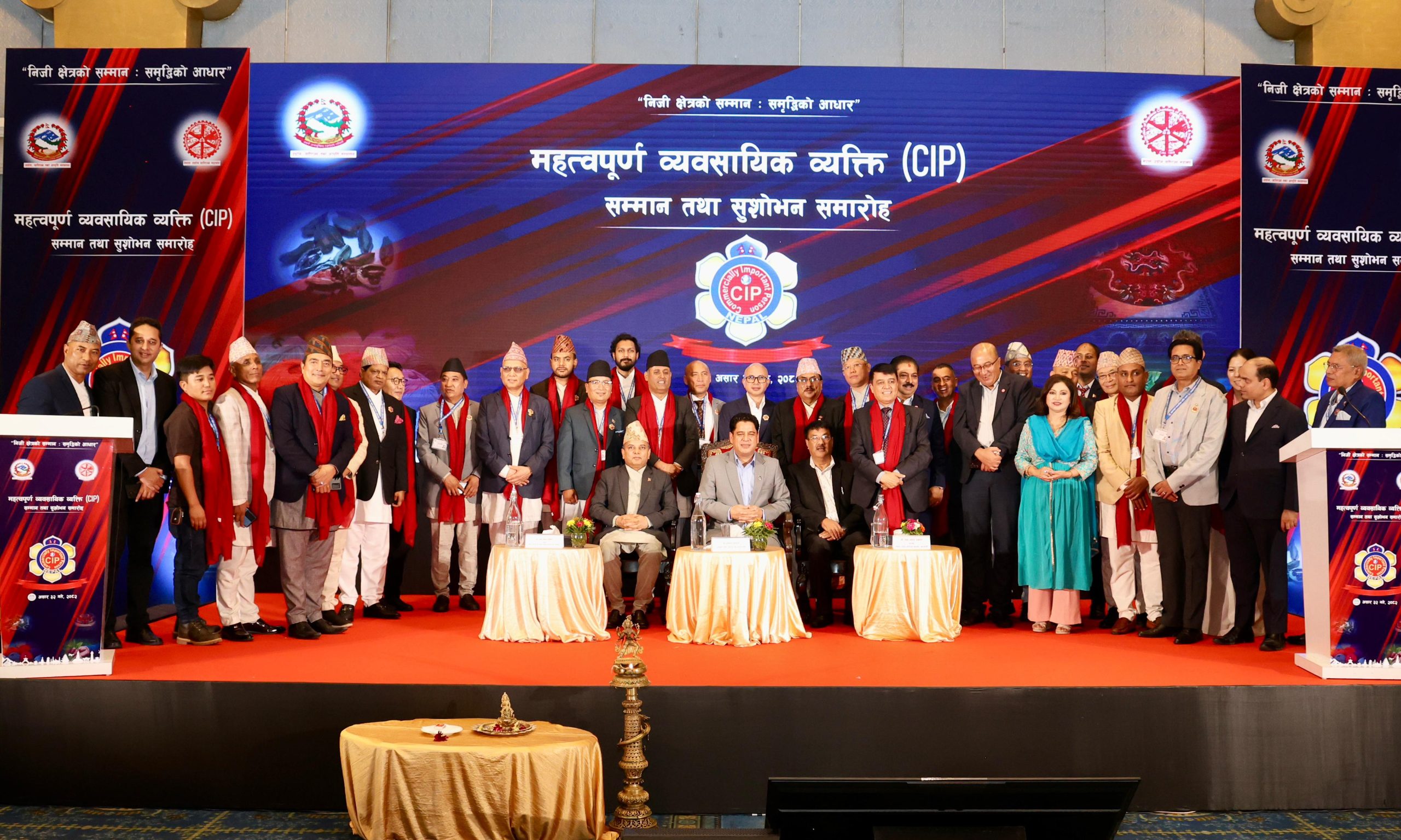 उद्योग वाणिज्य तथा आपूर्ती मन्त्रालयको आयोजना तथा नेपाल उद्योग वाणिज्य महासंघको सहकार्यमा बुधबार काठमाडौंमा आयोजित कार्यक्रममा उद्योग वाणिज्य तथा आपूर्ती मन्त्री दामोदर भण्डारीले सिआइपी सम्मान प्रदान गर्नु भएको हो ।