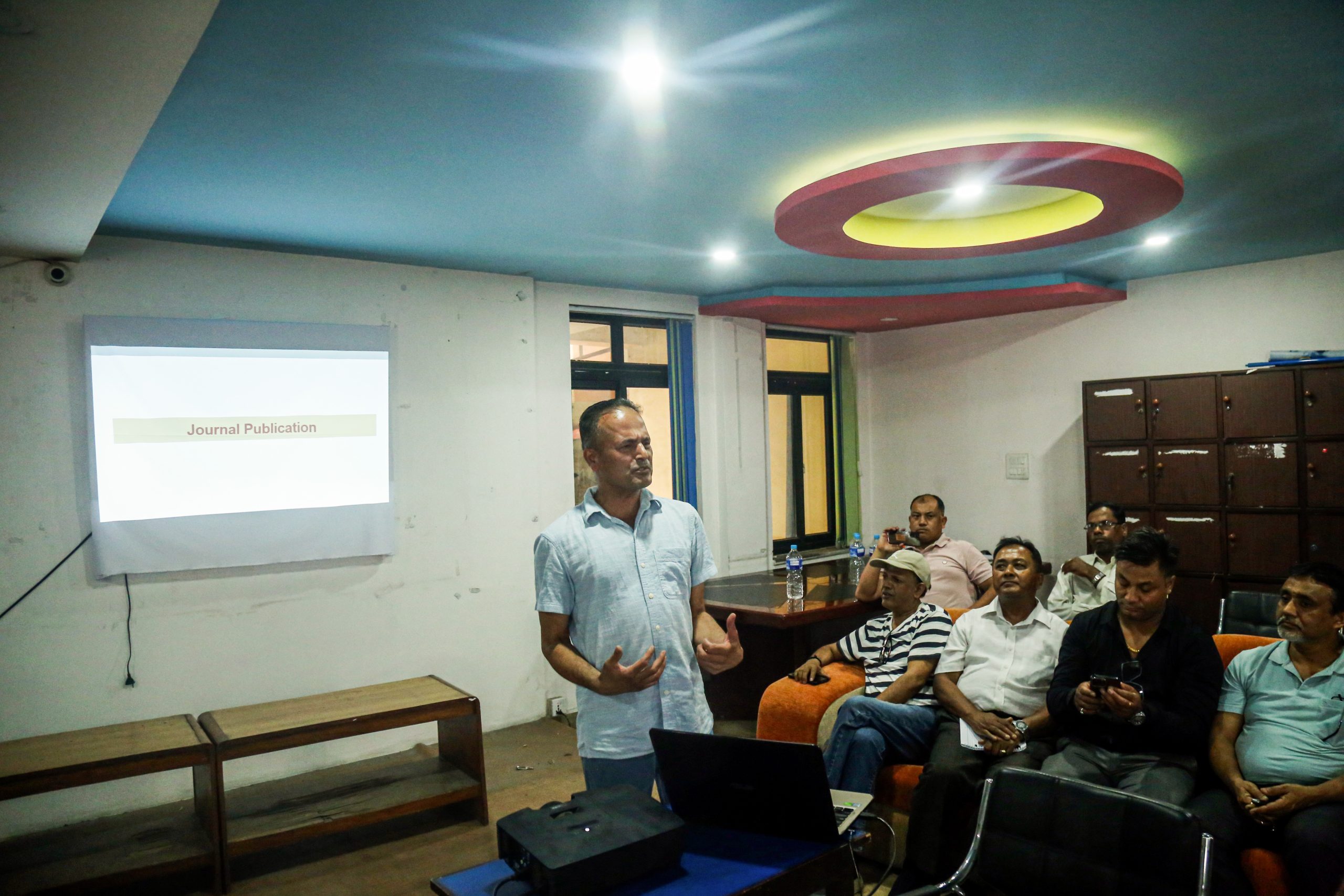 कार्यक्रममा संस्थाका अध्यक्ष डा तेजबहादुर कार्कीले अनुसन्धान र खोज तथा यसको प्रकाशनमार्फत ज्ञानको सिर्जना र प्रचारप्रसारमा सेन्टरले सहयोगी निकायका रूपमा महत्त्वपूर्ण भूमिका निर्वाह गर्दै आएको बताउनुभयो ।