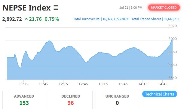 नेप्से परिसूचक २१ अङ्कले बढ्यो
