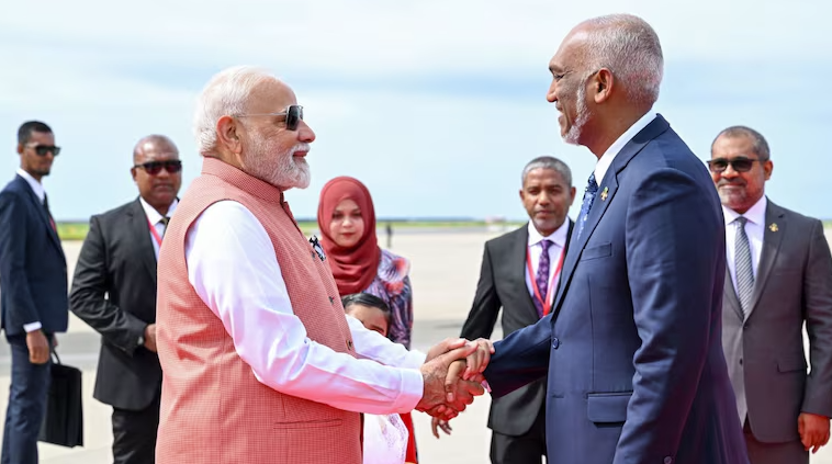 एजेन्सी । भारतीय प्रधानमन्त्री नरेन्द्र मोदी आफ्नो दुई राष्ट्रको भ्रमणको दोस्रो चरणका रूपमा शुक्रबार माल्दिभ्स आइपुग्नुभएको छ । उहाँको आगमनमा राष्ट्रपति मुइज्जुले न्यानो स्वागत गर्नुभयो ।