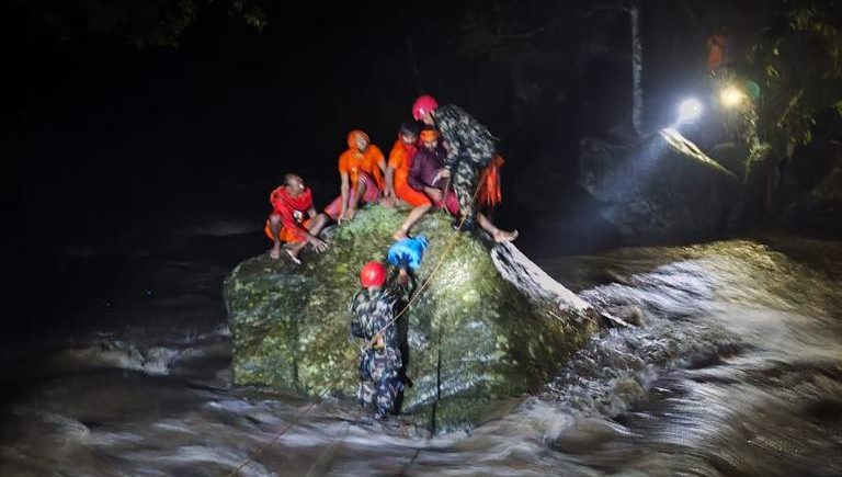 सुन्दरीजलमा खोलाको बीचमा फसेका पाँच जनाको उद्धार