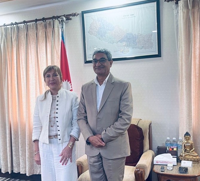 काठमाडौँ। गृहमन्त्री रमेश लेखकसँग संयुक्त राष्ट्रसङ्घीय आवासीय संयोजक हाना सिङ्गर हाम्दीले भेट गर्नुभएको छ ।
