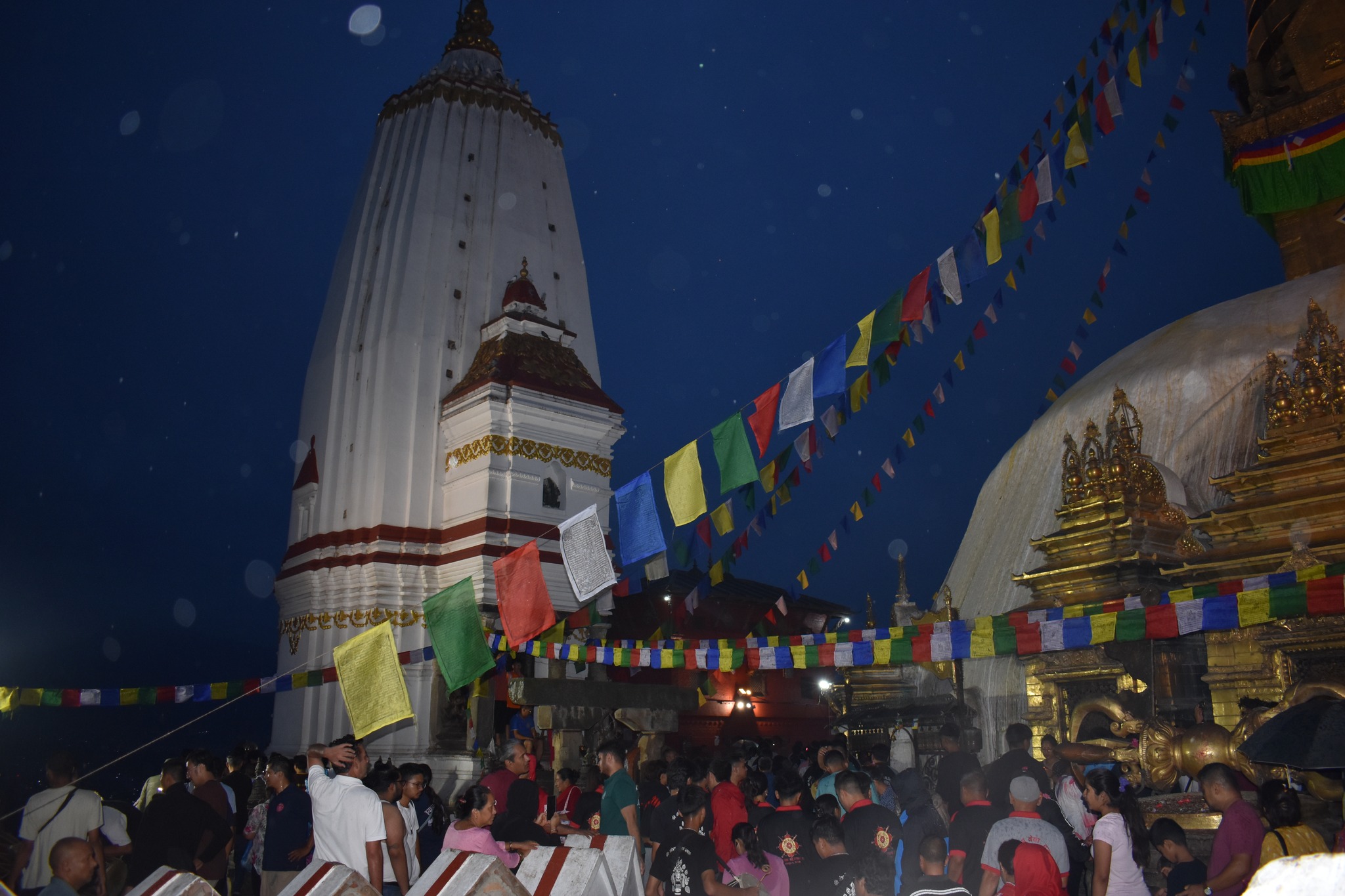 यस अवधिमा स्वयम्भू महाचैत्यमा एक महिनासम्म मेला पनि लाग्ने गर्छ । भक्तजनले स्वयम्भू महाचैत्यको दर्शन परिक्रमापछि शोभाभगवतीसँगैका विजयश्वरीको दर्शन गरी केलटोलस्थितको सेतो मत्स्येन्द्रनाथको दर्शन गर्ने परम्परा छ ।
