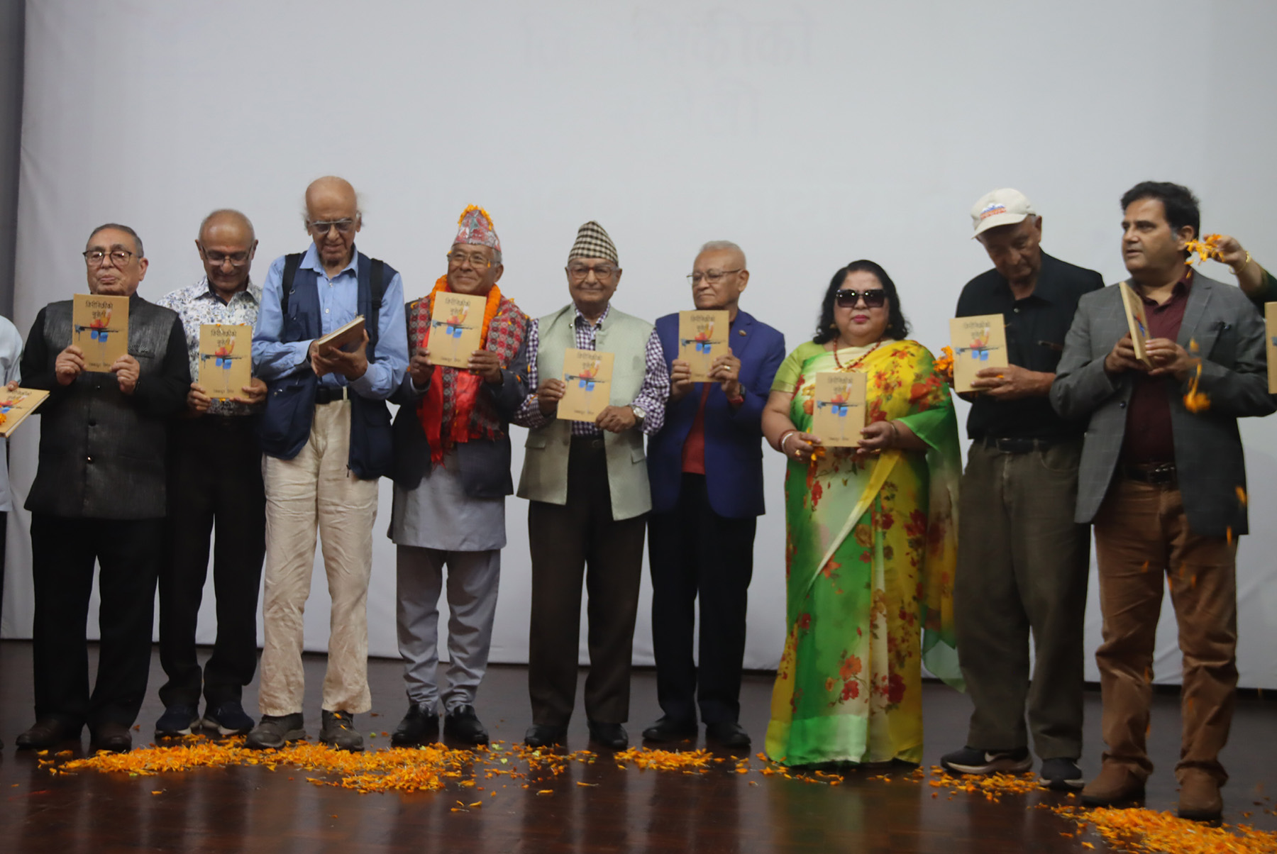 काठमाडौँ, १८ साउनः पर्यटन प्रवद्र्धन मञ्च नेपालको आयोजनामा आइतबार काठमाडौँ भृकुटीमण्डपमा कवि टेकबहादुर जिरेलद्वारा लिखित ‘जिरीसिक्रिको सुसेली’ संयुक्त रुपमा पुस्तक लोकार्पण गर्नुहुँदै लेखक टेकबहादुर जिरेललगायत साहित्यकार तथा कलाकारलगाएत । तस्बिरः हरिराम भेटुवाल÷रासस