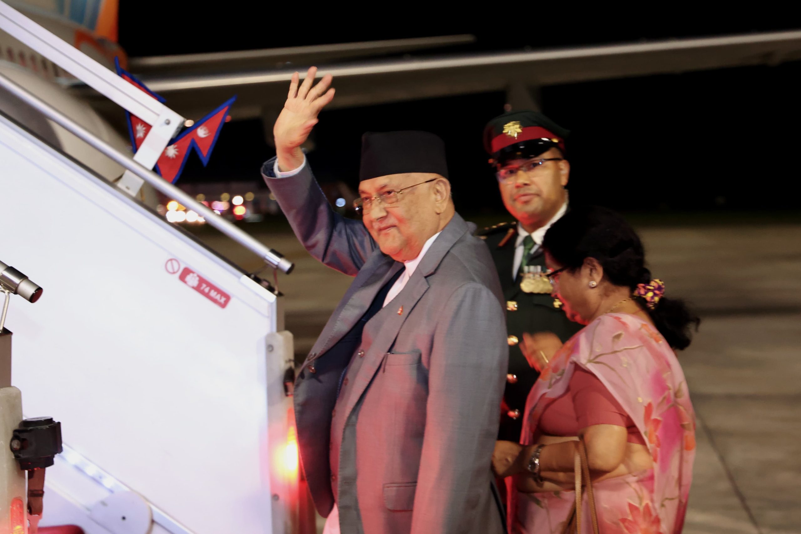त्रिभुवन अन्तर्राष्ट्रिय विमानस्थलको अति विशिष्ट कक्षमा उपप्रधानमन्त्री एवम् शहरी विकासमन्त्री प्रकाशमान सिंह, गृहमन्त्री रमेश लेखक, परराष्ट्रमन्त्री डा आरजु राणा देउवा, संस्कृति, पर्यटन तथा नागरिक उड्डयनमन्त्री बद्री पाण्डेले प्रधानमन्त्रीलाई विदाई गर्नुभयो ।