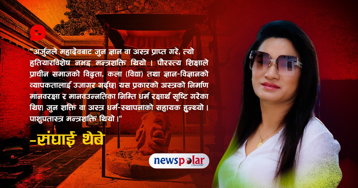 यसको ज्वलन्त उदाहरण धर्मका पथिक अर्जुनलाई लिनसकिन्छ। किनकि अर्जुनले भगवान शिव र श्रीकृष्णप्रति समर्पण र भक्ति-भावको गहिराईमा अवतरित भइ धर्म संरक्षणको माग गर्नु र आफ्नो पूर्वज महर्षि वेदव्यास द्वारा पाएको ज्ञानलाई व्यवहारिक कौशलता वा बुद्धिमत्ताका साथ अंङ्गीकार गर्नु हो। अर्जुनले महादेवबाट जुन ज्ञान वा अस्त्र प्राप्त गरे, त्यो हतियारविशेष नभइ मन्त्रशक्ति थियो। पौरस्त्य शिक्षाले प्राचीन समाजको विद्धता, कला (विद्या) तथा ज्ञान-विज्ञानको व्यापकतालाई उजागर गर्दछ। यस प्रकारको अस्त्रको निर्माण मानवरक्षा र मानवउन्नतिका निम्ति धर्म रक्षार्थ सृष्टि गरेका थिए। जुन शक्ति वा अस्त्र धर्म-स्थापनाको सहायक हुन्थ्यो। पाशुपतास्त्र मन्त्रशक्ति थियो।