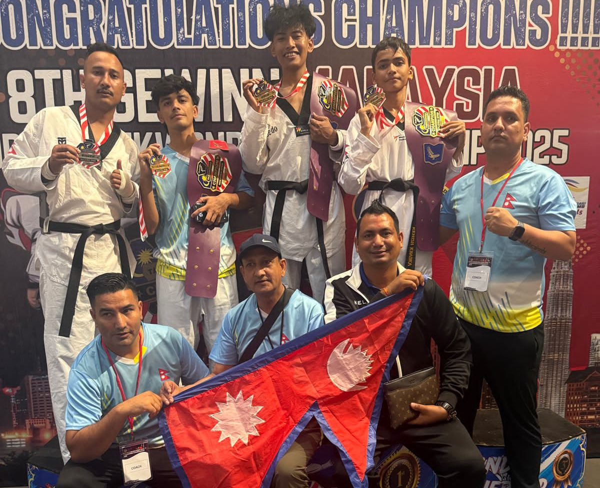 काठमाडौँ: नेपाली तेक्वान्दो खेलाडीले आठौं गेविन मलेसिया खुला अन्तर्राष्ट्रिय तेक्वान्दो प्रतियोगितामा शनिबार ३ स्वर्ण र १ रजत गरी ३ पदक जितेका छन् ।