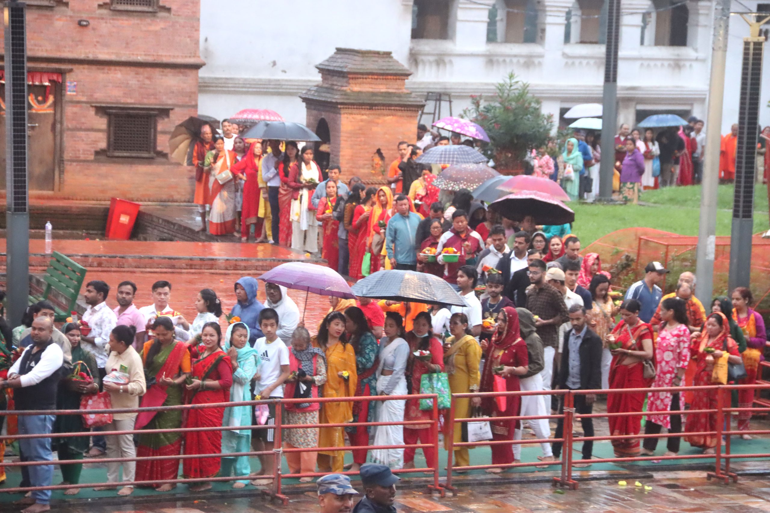 बिहान ३ बजेदेखि नै पशुपतिका चारै ढोका खोलिएको पशुपति क्षेत्र विकास कोषका सदस्य सचिव सुवासचन्द्र जोशीले जानकारी दिनुभयो । अन्य विशेष पर्वमा जस्तै पशुपतिनाथमा भक्तजनको प्रवेशका लागि चार स्थानबाट लाम लाग्ने व्यवस्था गरिएको छ । पहिलो लाम गौरीघाट–उमाकुण्ड–रुद्रगाडेश्वर हुँदै पश्चिमढोकाबाट, दोस्रो लाम मित्रपार्क–दक्षिणामूर्ति पश्चिम मूलढोकाबाट, तेस्रो लाम जयवागेश्वरी–भुवनेश्वरी–शङ्कराचार्य मठबाट पश्चिम मूलढोकाबाट, चौँथो लाम पिङ्गलास्थान–चार शिवालय–पञ्चदेवल हुँदै दक्षिणढोकाबाट मन्दिर प्रवेश गर्ने व्यवस्था मिलाइएको कोषले जनाएको छ ।