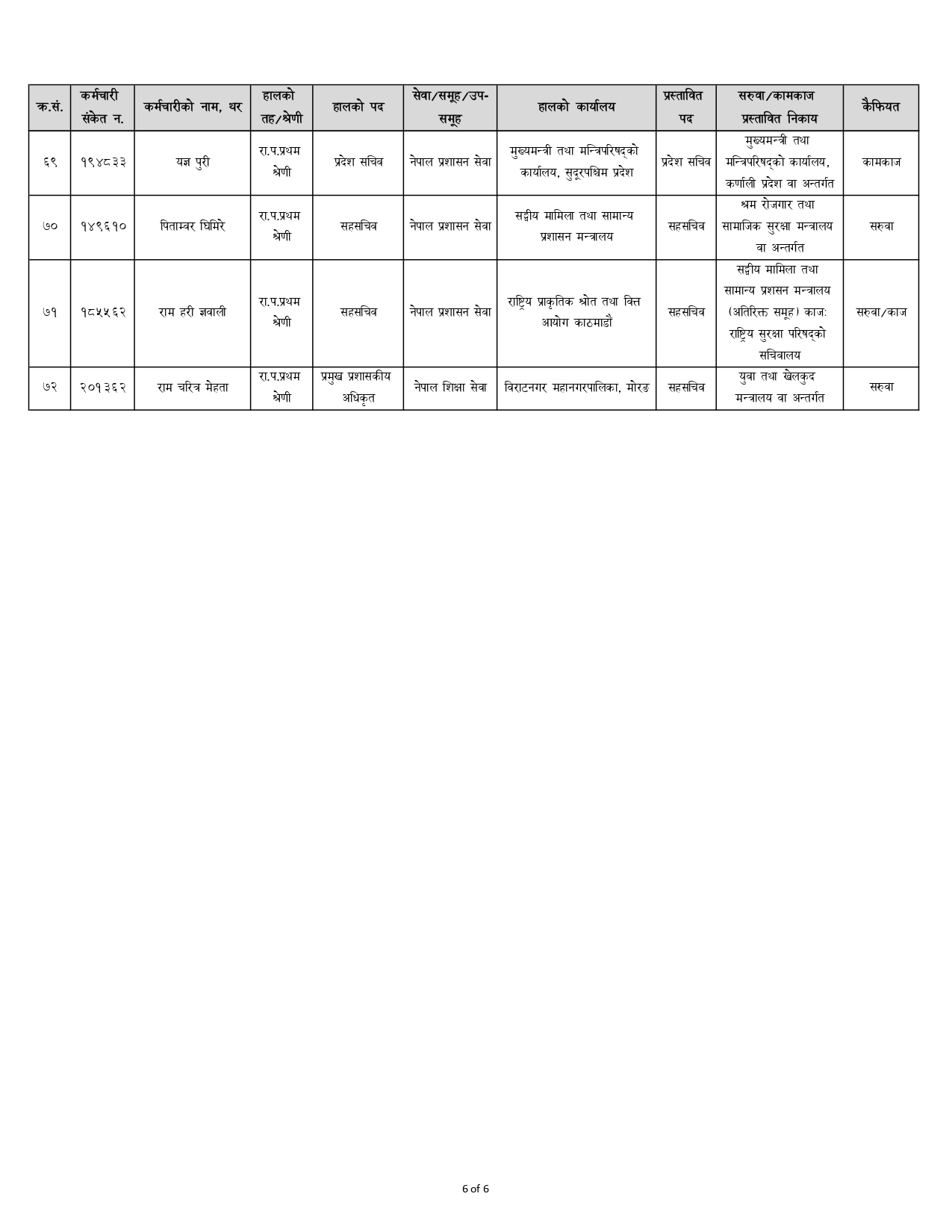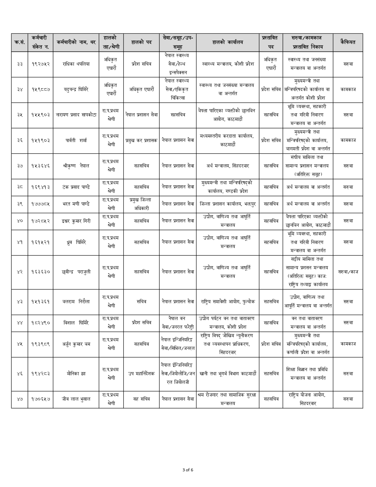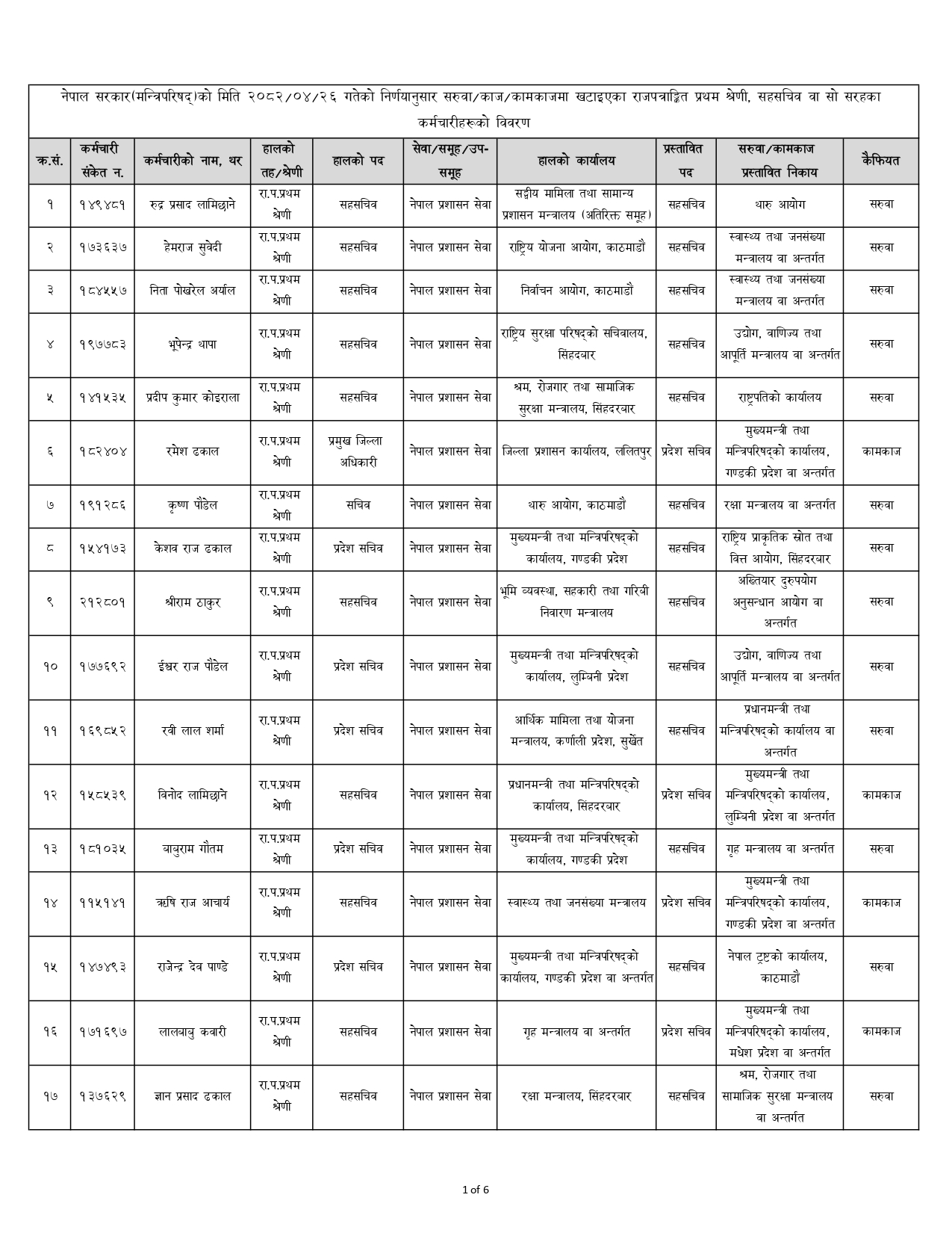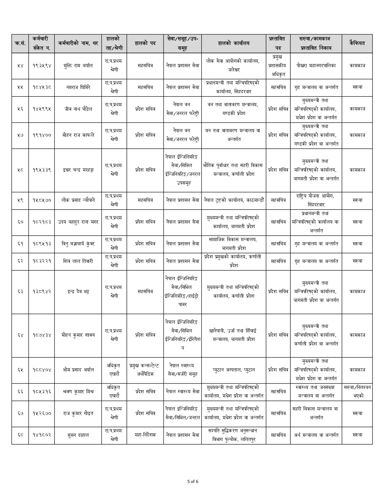 सरकारले गर्यो ७२ जना सहसचिवको सरूवा (को, कहाँ ?)