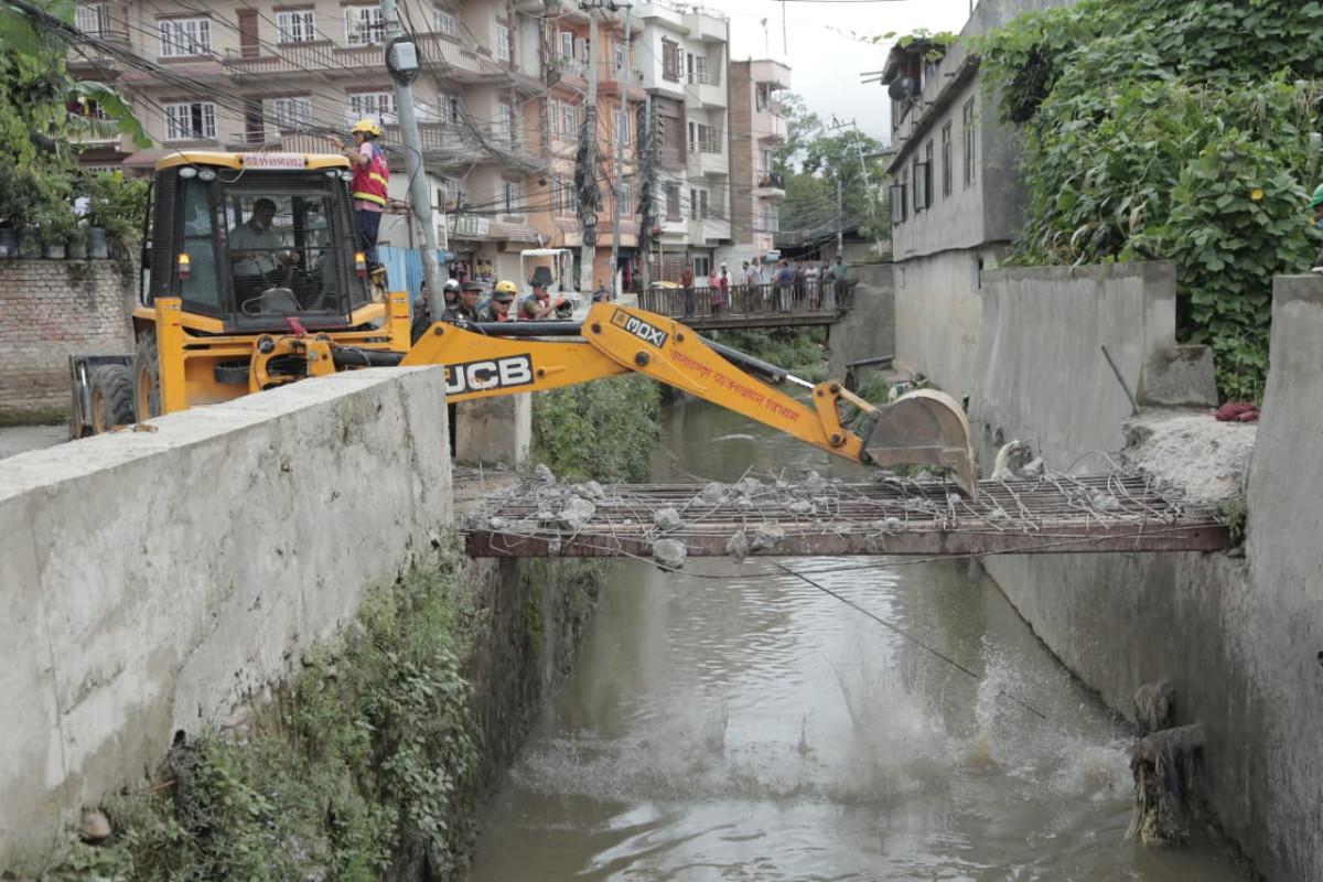 बिहीवार कालीमाटी, कुलेश्वर भई बग्ने मनमती खोलामाथि बनेका स्वीकृति बेगरका संरचनामा डोजर चलाएको हो । स्वीकृति नभएका पक्की पुलमासमेत डोजर र ब्रेकर लगाएर महानगरपालिकाले भत्काउने गरेको छ । महानगरपालिकाले यसअघि पनि अवैधानिक रुपमा बनाइएका संरचनामाथि डोजर चलाउँदै आएको छ ।
