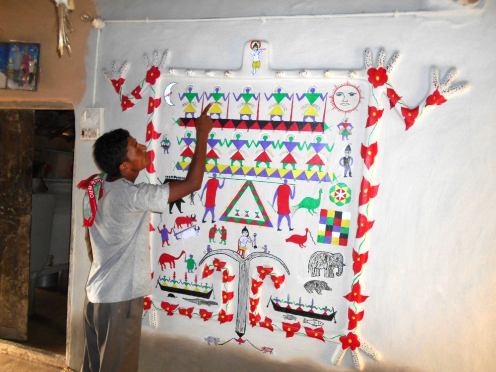“ब्रह्ममुहूर्तमा दर खाएपछि घरमा रहेको ब¥ही (बैठक) कोठमा व्रतालु थारू महिलाले आफ्नै हातले कान्हा अर्थात् भगवान् श्रीकृष्णको चित्रसहित अन्य लोकचित्रहरू बनाउने गर्दछन्”, उहाँले भन्नुभयो, “चित्र बनाउँदा पश्चिमतर्फ चन्द्रमा, पूर्वमा सूर्य, माछा, लठ्ठी, गङ्गटा, सर्प, कुकुर, रूखमा बसेका बाँदर, गड्याँैला, कछुवा, हात्ती, घोडा, गोरु, ऊट, कुखुरा, मयूर, बिच्छी, बासुकी नागलगायत जलचर र थलचर प्राणीका चित्र बनाउने गरिन्छ ।”