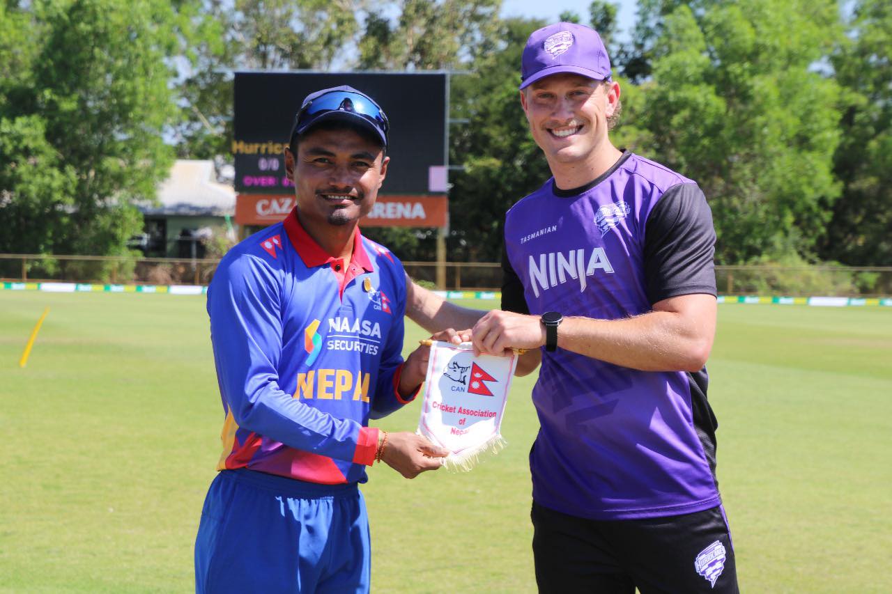 मंगलबार डार्विनको पार्मर्स्टनस्थित काजालिस एरेनामा टस जितेर नेपाली टिमका कप्तान रोहितकुमार पौडेलले पहिला ब्याटिङ गरेने निर्णय लिएका हुन् ।