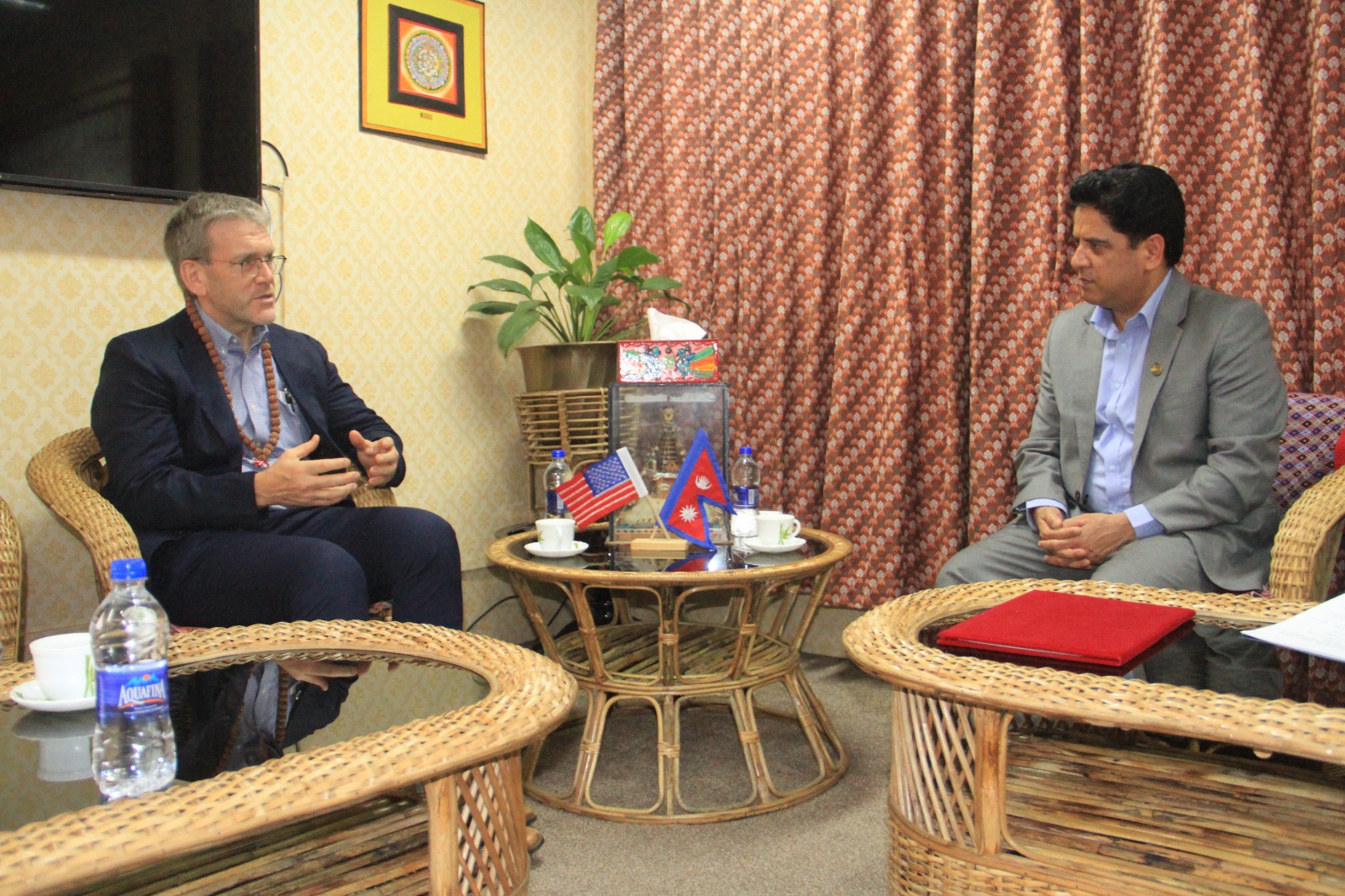 उद्योगमन्त्री भण्डारीसँग अमेरिकी राजदूत थमसनको शिष्टाचार भेट