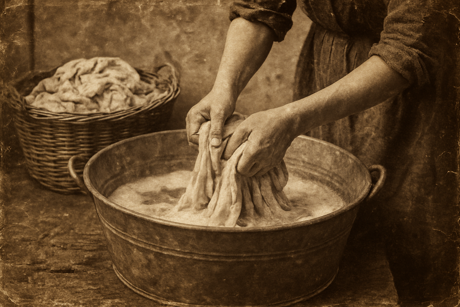पिसाब संकलन गरी ठूला ट्याङ्कीहरूमा राखिन्थ्यो । त्यसपछि यी ट्याङ्कीहरूमा लुगा राखिन्थ्यो । ट्याङ्कीमा लुगा राखेपछि, एक व्यक्ति त्यसमा ओर्लिन्थे र लुगा धुन्थे ।