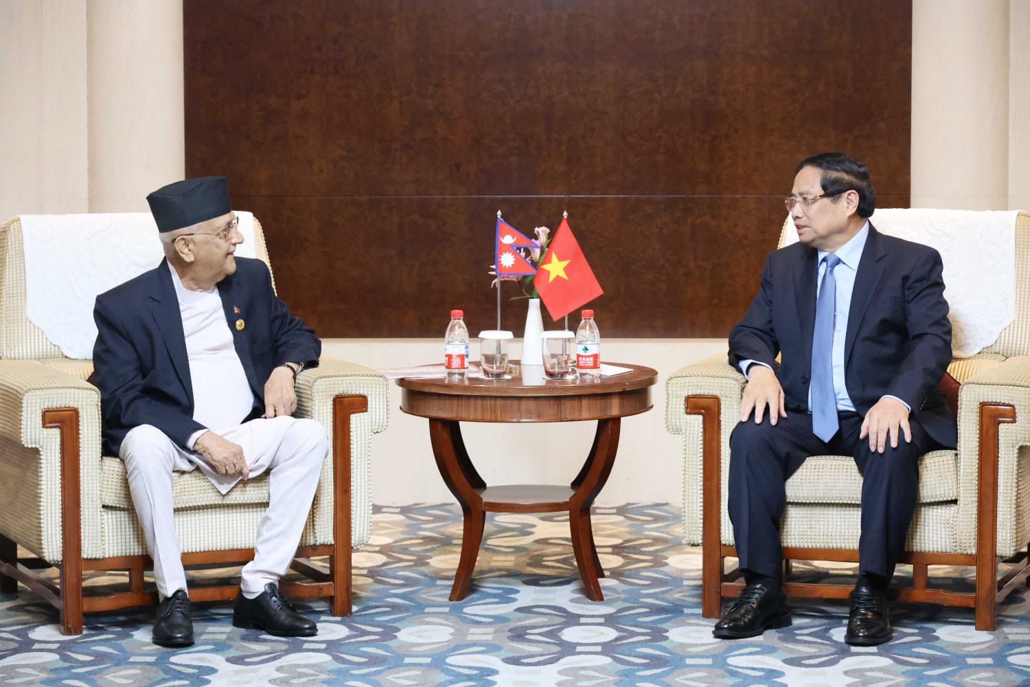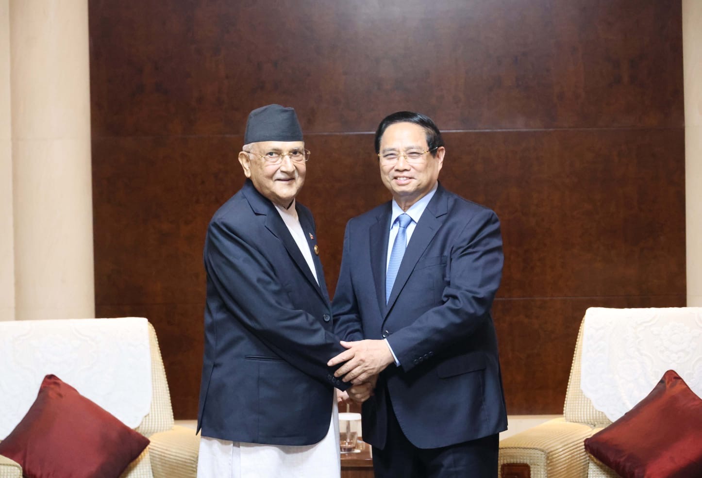 काठमाडौँ । प्रधानमन्त्री केपी शर्मा ओली र समाजवादी गणतन्त्र भियतनामका प्रधानमन्त्री फाम मिन चिङबीच चीनको थियानजिनमा दुईपक्षीय भेटवार्ता भएको छ ।