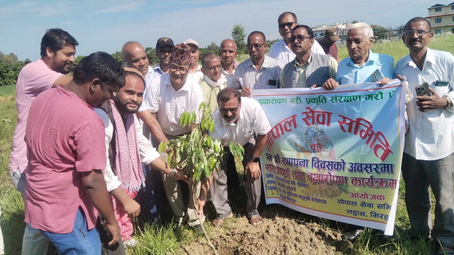 सिरहा। गोपाल सेवा समिति लहानले आफ्नो २४औँ स्थापना दिवसका अवसरमा आज जेएस मुरारका बहुमुखी क्याम्पस लहानको खुल्ला मैदानमा वृक्षरोपण गरेको छ । वातावरण संरक्षणका लागि जागरुकता फैलाउने उद्देश्यले कार्यक्रम आयोजना गरिएको समितिले जनाएको छ ।