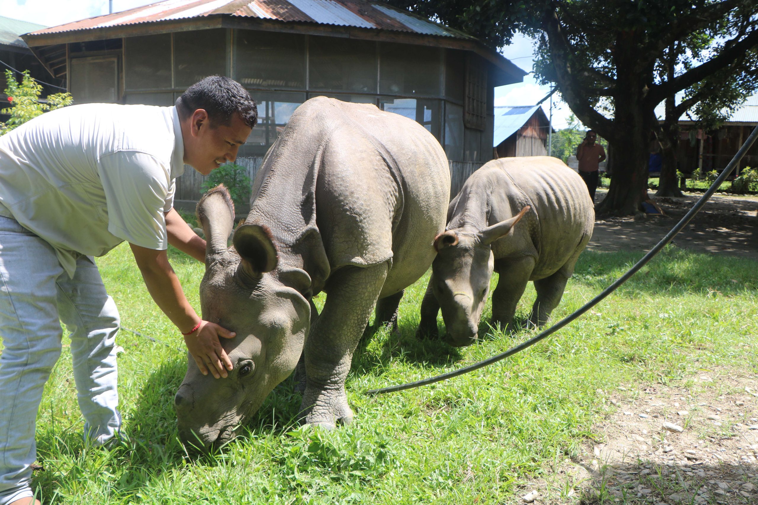 हाल केन्द्रमा रहेका राम र देवलाई प्राकृतिक वातावरणसँग घुलमिल हुने अभ्यास गराइँदैछ । उनीहरू प्राय: निकुञ्ज तथा सौराह आसपासको क्षेत्रमा घुम्ने गर्छन्, जसले यहाँ आउने पर्यटकका लागि आकर्षणको केन्द्र बनाउँछ । छवटा गैँडाका बच्चालाई दैनिक रूपमा पालनपोषण गरी हुर्काइ सक्नुभएका केन्द्रका वन्यजन्तु प्राविधिक लालबहादुर महतरा यी गैँडाको स्याहारमा संलग्न हुनुहुन्छ । उहाँले आफ्नै सन्तानजस्तै माया गरेर गैँडाका बच्चाहरूलाई दूध एवं आहार खुवाउने गर्नुहुन्छ । “बच्चा अवस्थामा दुई–दुई घण्टाको अन्तरालमा दूध खुवाउनुपर्ने हुन्छ भने अलि ठूला भएपछि मकैको कुँडो र अन्य आहार दिन सुरु गरिन्छ”, महतराले भन्नुभयो,“मैले हासम्म देव, राम, पूजा, माइला, पुष्पा र अञ्जली नामक गैँडाहरू हुर्काइसकेको छु । यहाँ ल्याउँदा हिँड्नसमेत नसक्ने अवस्थाका देव र राम पनि विस्तारै तङ्ग्रिँदै छन् ।”