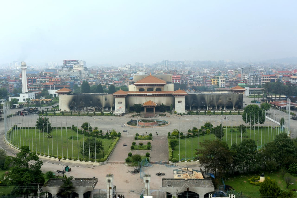प्रदर्शनका क्रममा आन्दोलनकारीले नयाँ बानेश्वरस्थित संसद् भवन जलाउदा अस्तव्यस्त भएको छ ।